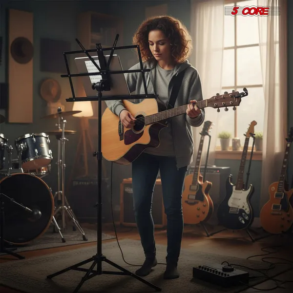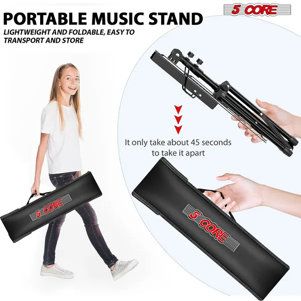 Elevate your music or reading experience with this sturdy, all-metal music stand. Its adjustable desktop design allows you to position your sheets at the perfect angle, reducing eye strain and improving focus. The portable and foldable design makes it easy to take with you wherever you go, and the robust metal construction ensures it can withstand regular use. Perfect for musicians, students, and anyone who needs a reliable and convenient way to hold their sheet music or documents.