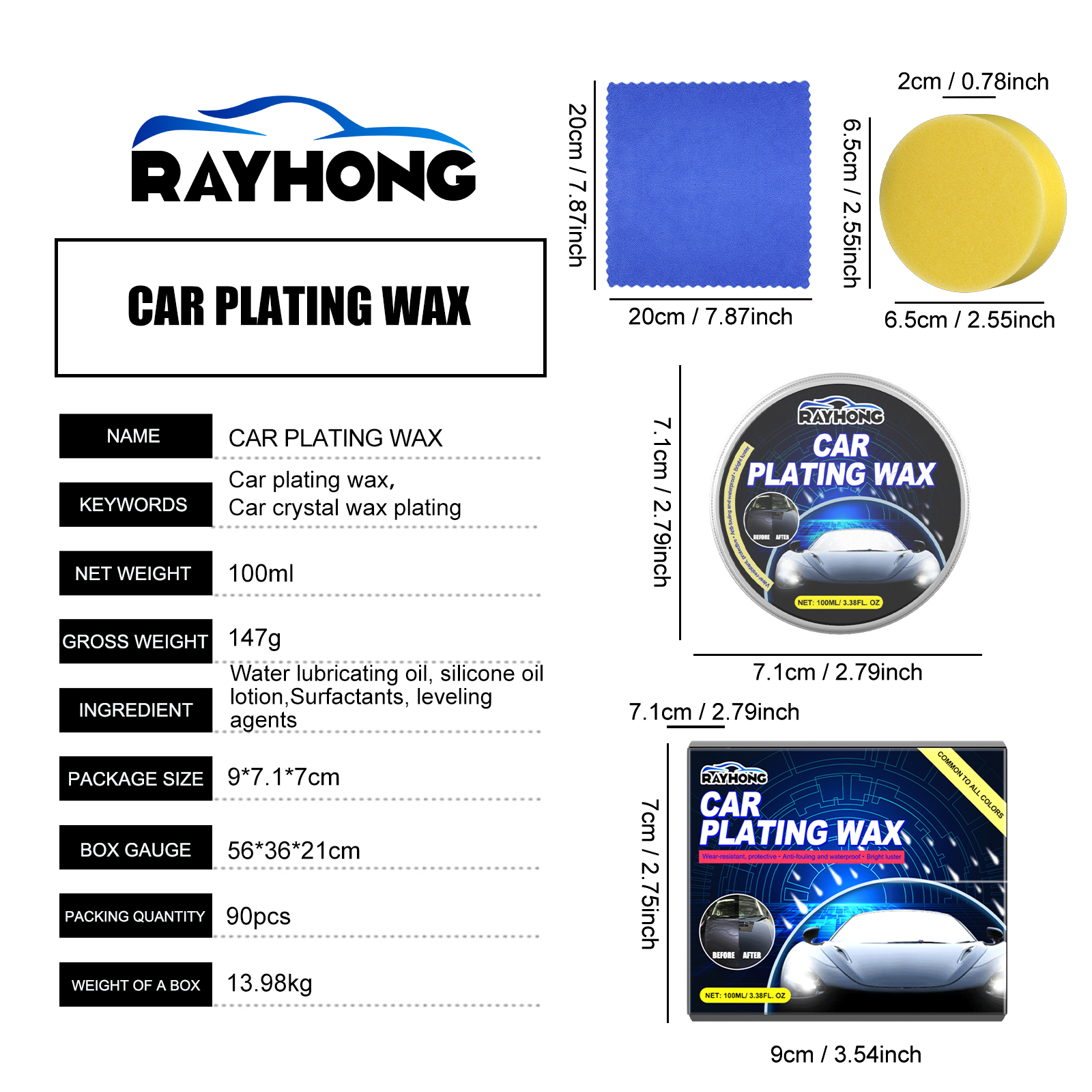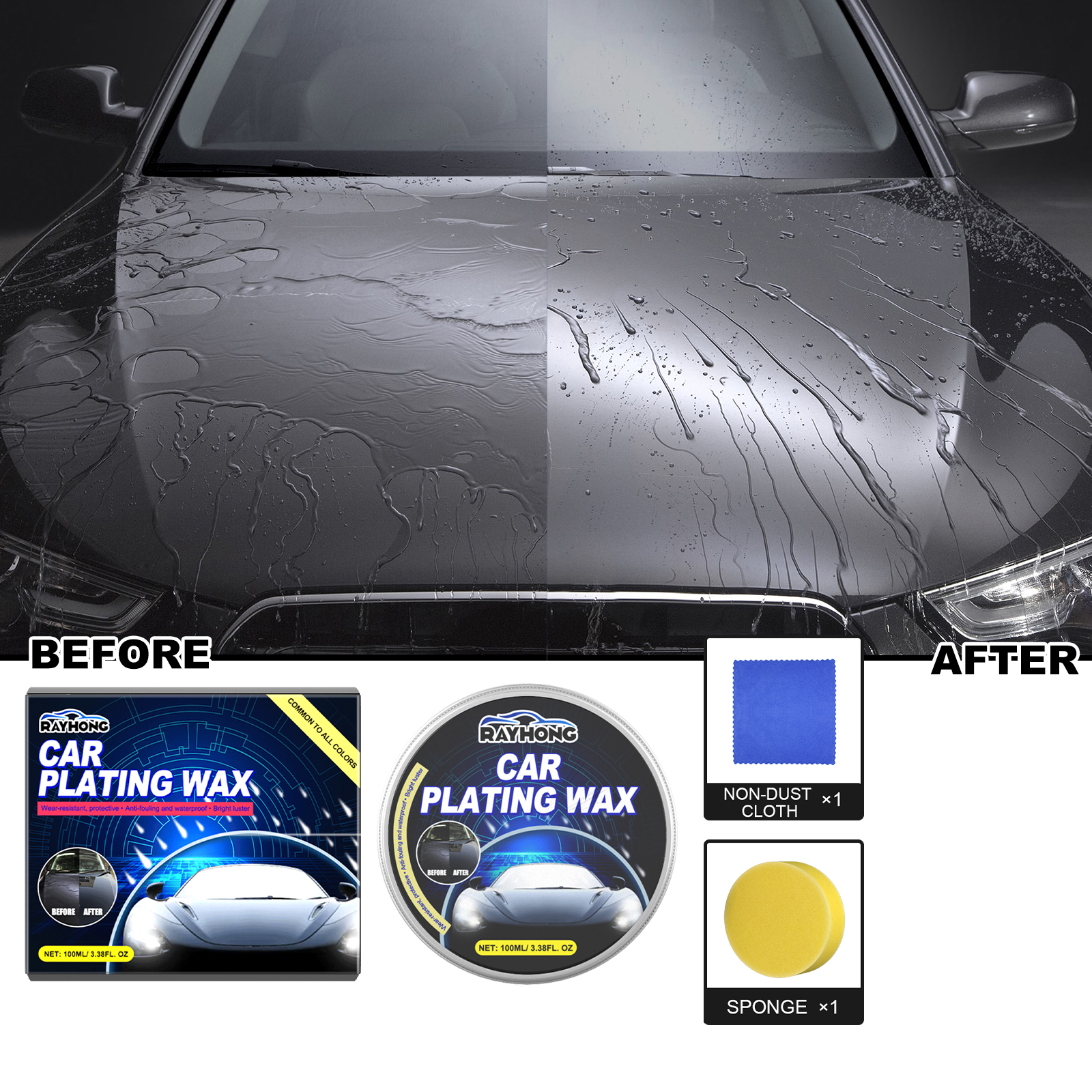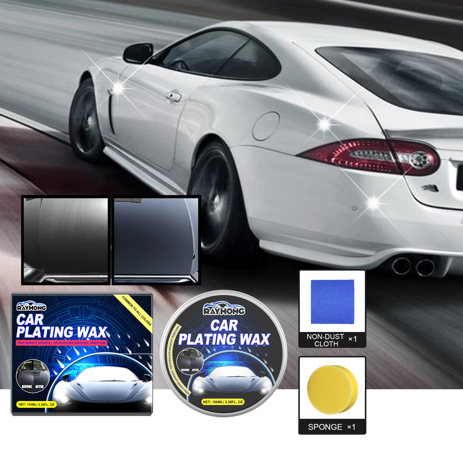 Our automotive coating wax contains lubricants, silicone oil emulsions and surfactants. It can be wear-resistant, protective, anti-fouling, waterproof shiny. Its use method is very simple: dip the sponge into the appropriate amount of this product, evenly rotate on the surface of the car, apply evenly, polish, wait 3-5 minutes, and then rotate the towel to wipe the front cover of the car, the roof, the left and right doors and other parts. And can be automobile plating crystal.