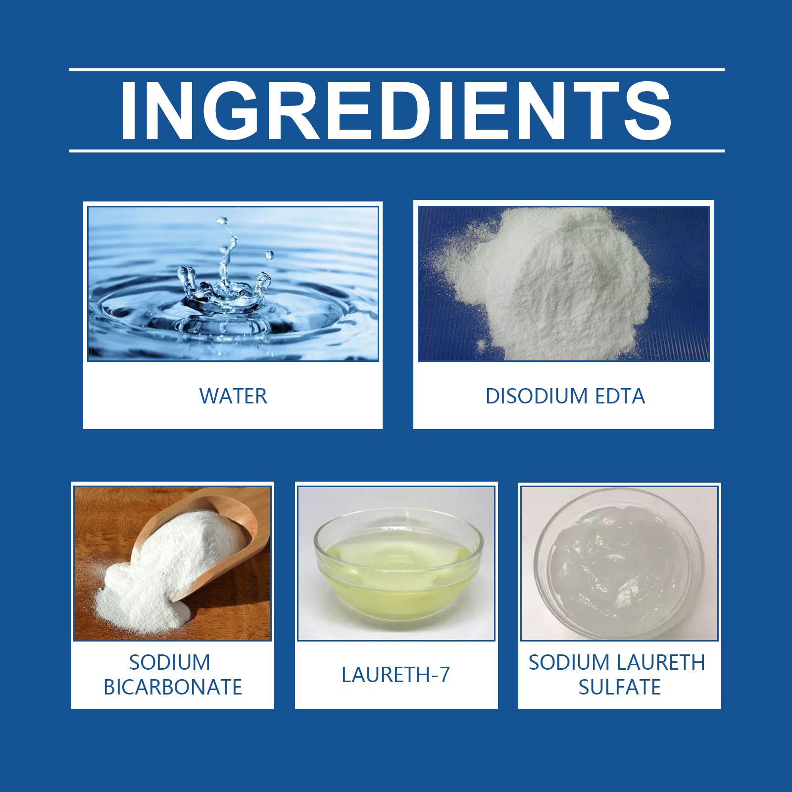 Our bathroom foam cleaning sprays contain disodium EDTA and sodium bicarbonate. It can quickly dissolve soap stains and scale in the bathroom and restore the surface luster. Its application is simple: spray the spray directly on the moldy area. Wait 3-5 minutes for the stain to dissolve and wipe off any remaining areas, then rinse off the foam with water. And visible cleaning results can be seen within minutes, saving your cleaning time.