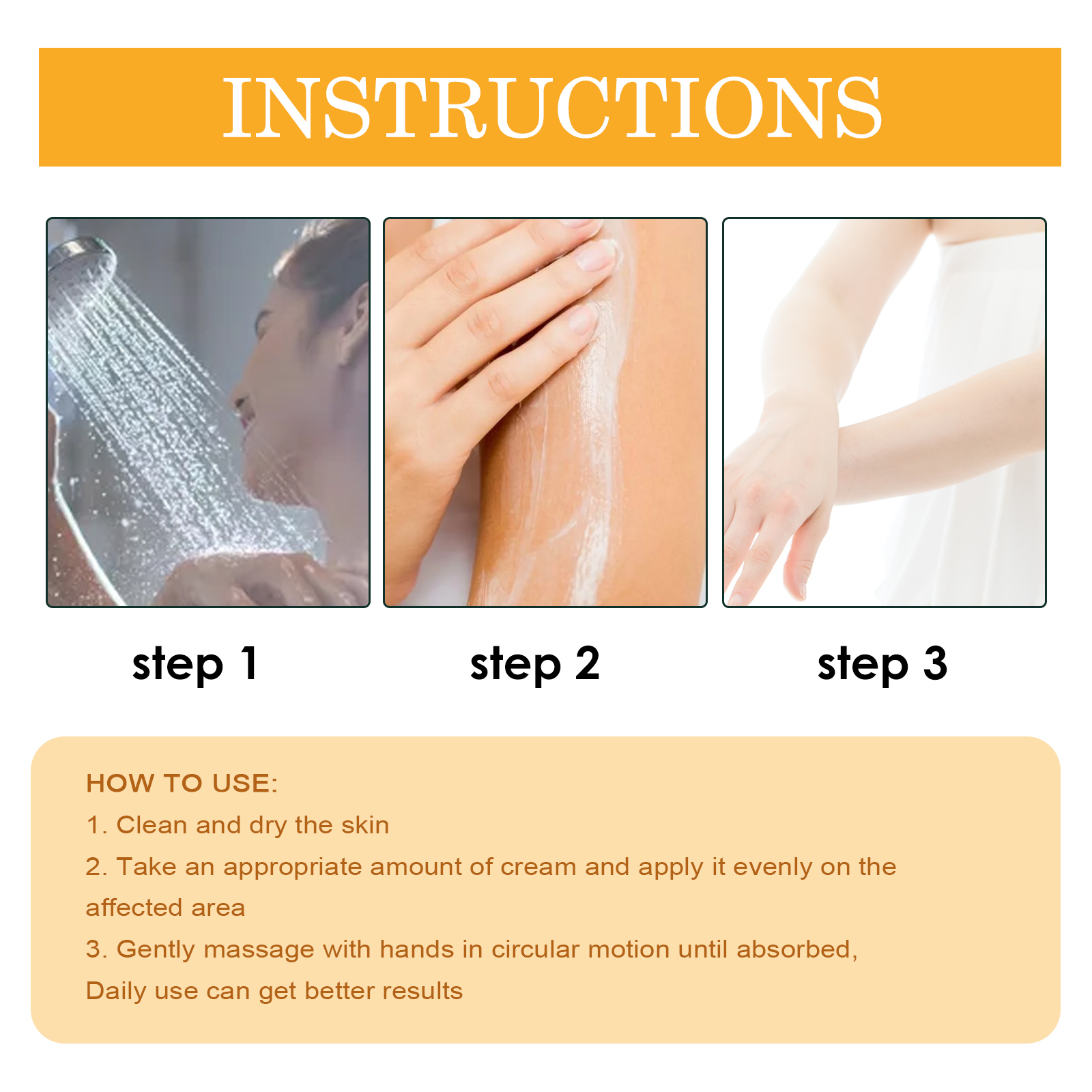 Our Bee Venom Psoriasis Relief Cream contains bee venom, peppermint extract and comfrey extract. It can be effective in relieving skin irritation and itching caused by atopic dermatitis or eczema. Its use method is very simple: clean and dry the skin, take appropriate amount of this product evenly apply to the affected area, gently massage with the hand in a circular motion until absorbed, daily use can get better results. Gently repair skin discomfort, relieve inflammation and itching.