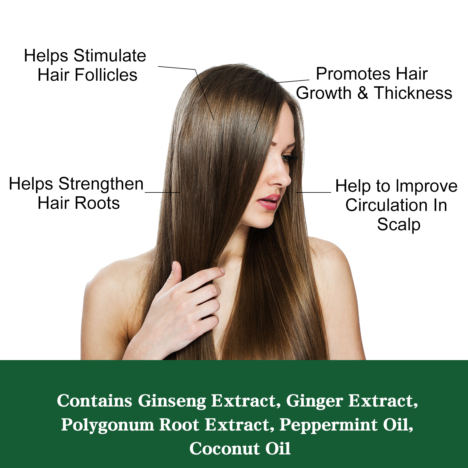 Our essential oils contain ginseng extract, Polygonum multiflorum root extract and peppermint oil. It strengthens, supplements, repairs and protects the hair, nourishes the scalp, prevents hair damage, helps restore stronger, thicker and fuller hair, and makes hair thicker, softer and shinier. The way to use it is very simple: first wash your hair or rub your hair until it is semi-dry. After that, apply appropriate amount of this product evenly on the hair seam, massage with fingertips in a circular motion to assist penetration and absorption, use once in the morning and evening, 2-3 times a day, to help stimulate new growth and prevent excessive oil secretion and blockage of hair follicles. Help hair growth nourish hair roots, replenish the nutrients needed for hair growth, and make hair more black and beautiful.