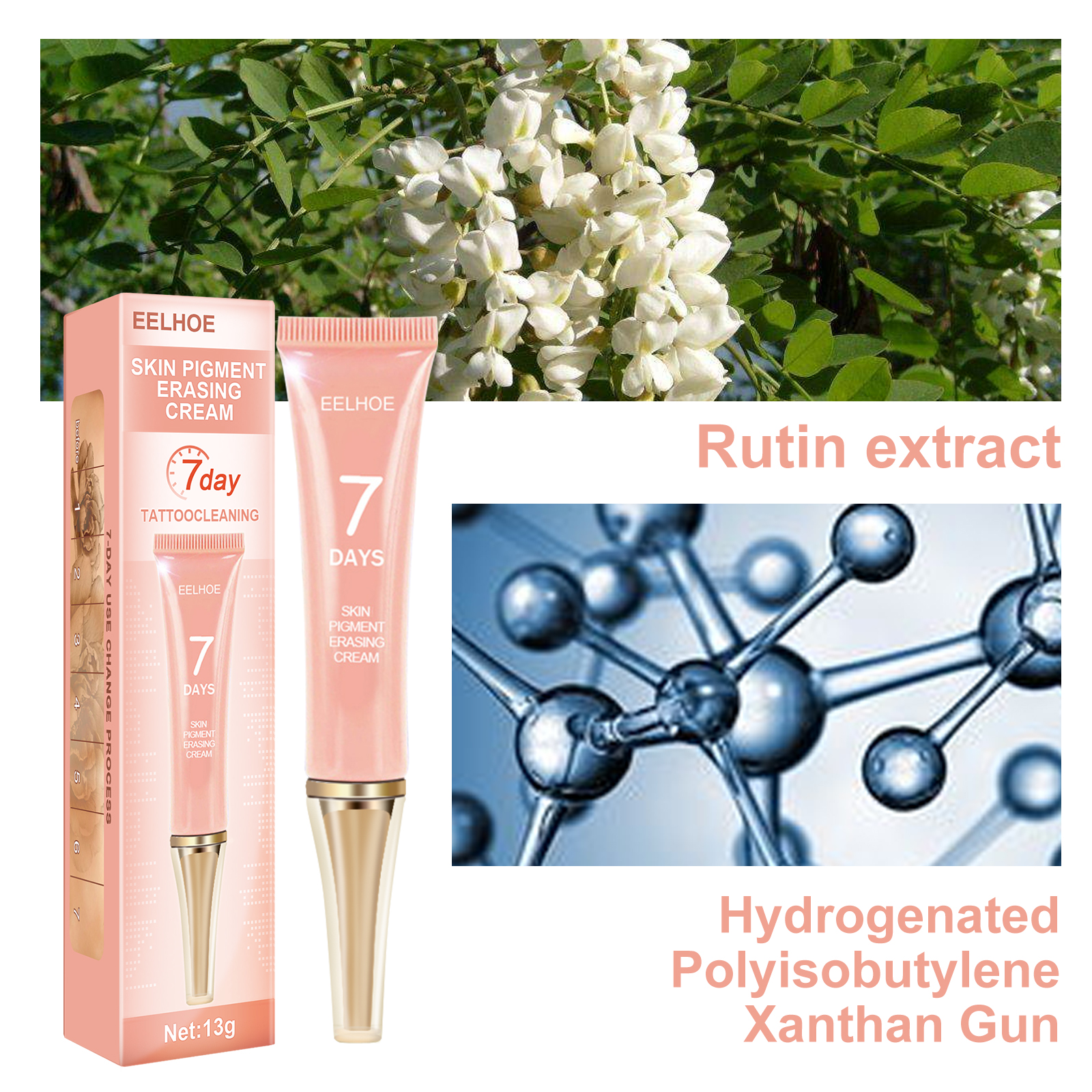 Our print cleaner contains oleate hexadecyl, rutin, diaminohexidine. It helps with painless scarless remedy and skin pigmentation elimination. Its use method is very simple: 1. Rinse the skin with water. 2. Warm compress with a hot towel can make the cleaning cream absorb faster. 3. Apply the cream to the printed area, apply evenly with a cotton swab, and gently massage until it does not absorb. 4.20 days or so start to see the effect, the focus of tattoo cleaning is persistence, persistence can be removed. The skin regenerates after persistent use, avoiding re-pigmentation, and long-lasting tattoo removal will regenerate the skin.