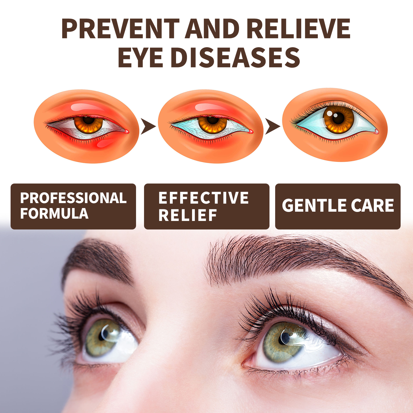 Our eye care lubricant spray contains sodium hyaluronate, vitamin B, cassia seed. It temporarily reduces pupil size, helping to improve the eye's ability to focus at close range while maintaining clear vision at a distance. Its application is simple: place the product about 30 cm from your eyes, press the nozzle with your index finger, and gently sweep it over your eyes. After use, it can help improve the eye's ability to focus at close range while maintaining clear long-distance vision, reducing discomfort and promoting clearer vision.