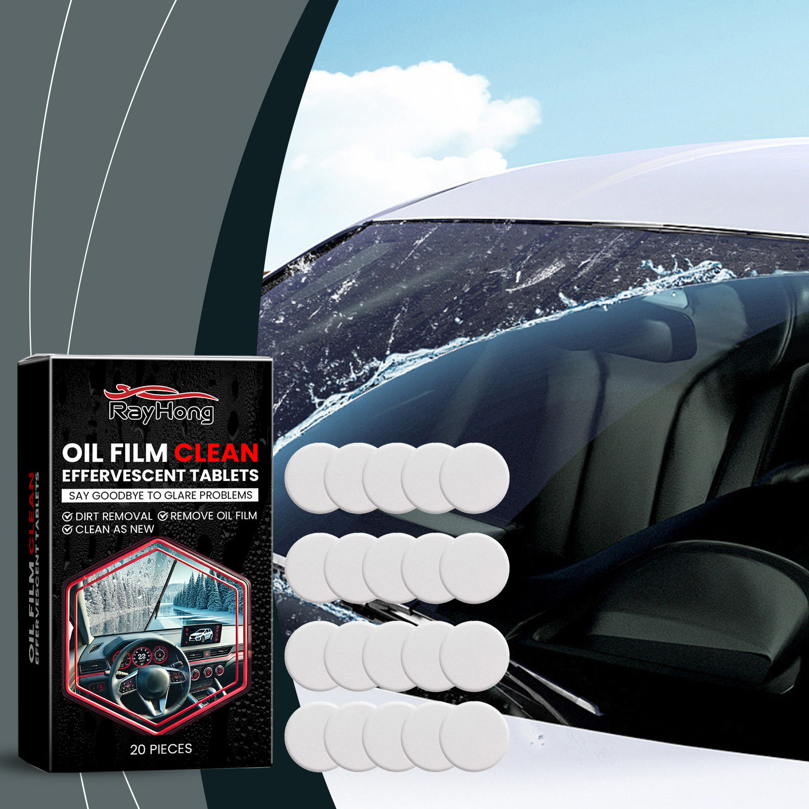 Our glass oil film cleaning tablets contain sodium bicarbonate and citric acid. It can quickly remove the oil film on the windshield and improve driving safety. Its use method is very simple: take the effervescent tablet into the right amount of water to dissolve; Apply the foam cleaner evenly to the surface of the windshield; Gently wipe the windshield with a tool to help remove oil film and dirt. Rinse with water. And it can improve the surface activity and remove the oil film quickly.
