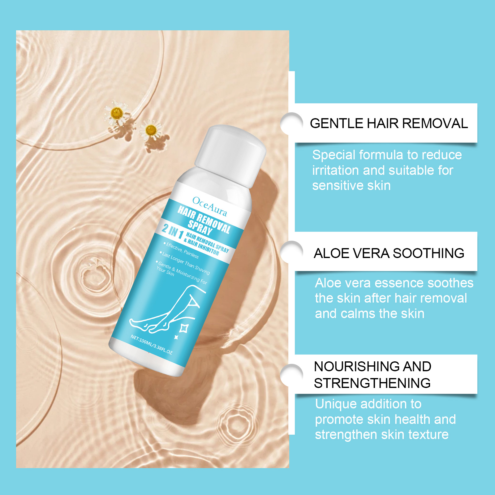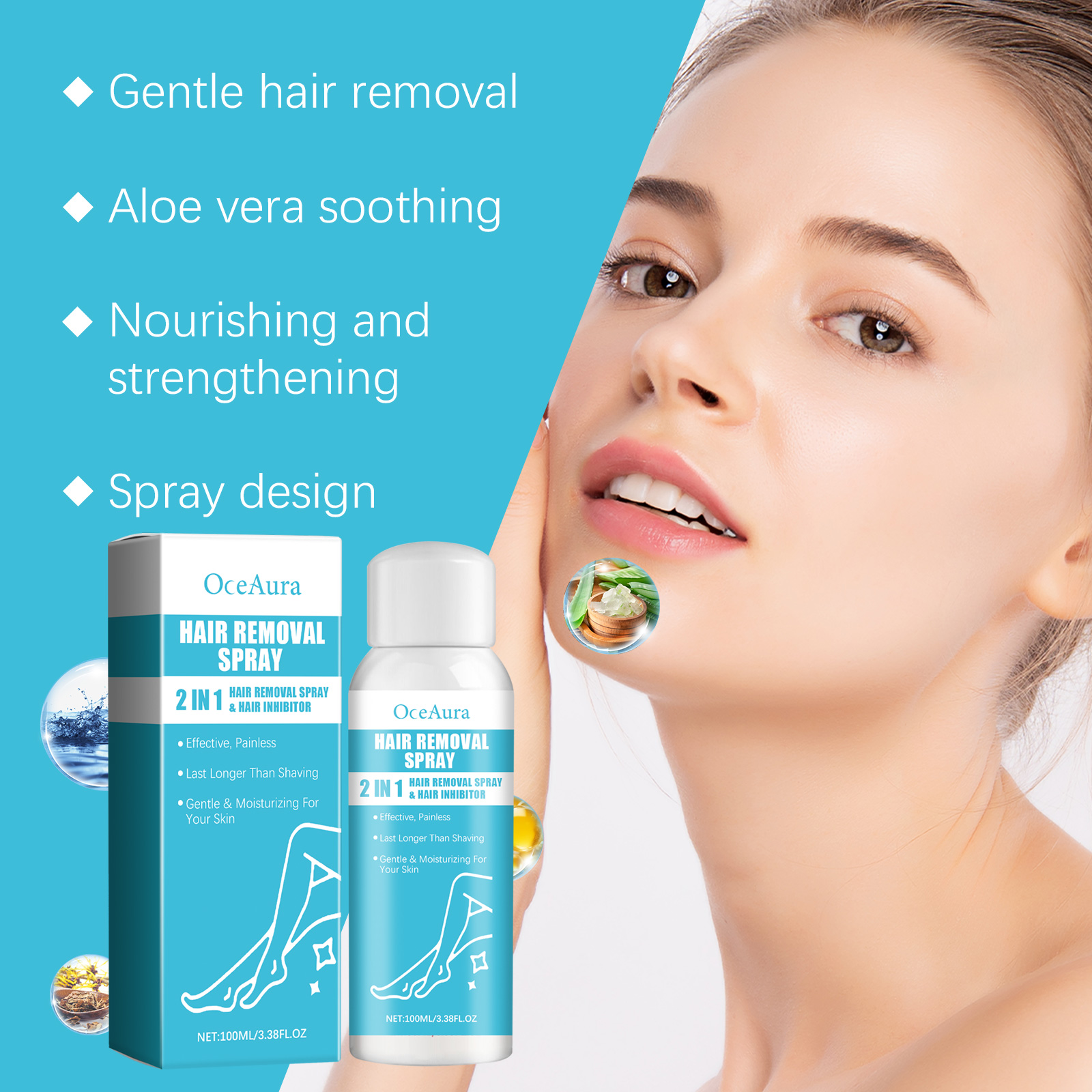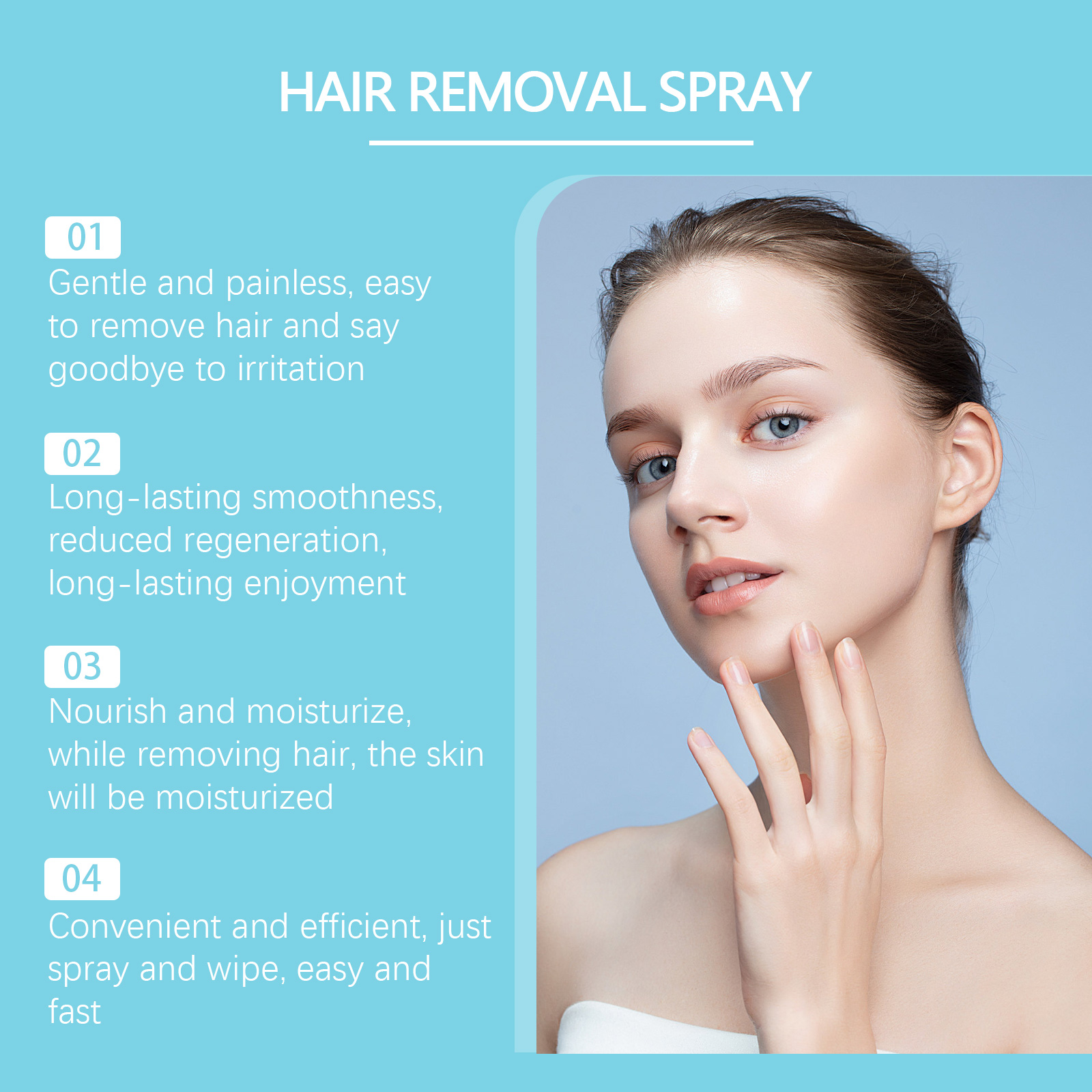 Our hair removal spray contains glycerin, aloe vera extract, witch hazel extract. It can quickly penetrate the hair roots and can be easily wiped off in a few minutes, significantly improving efficiency; Add a pleasant experience with a fresh and elegant scent, fragrant after hair removal. Its use is simple: 1. Clean and dry the skin; 2. Take appropriate amount of spray and spray evenly on the parts that need hair removal; 3. After waiting 5-15 minutes, clean the hair in the hair removal area. Fast action, no need to wait for a long time, instant witness smoothly. Contains a variety of plant extracts to reduce the need for frequent hair removal and make the skin more delicate.