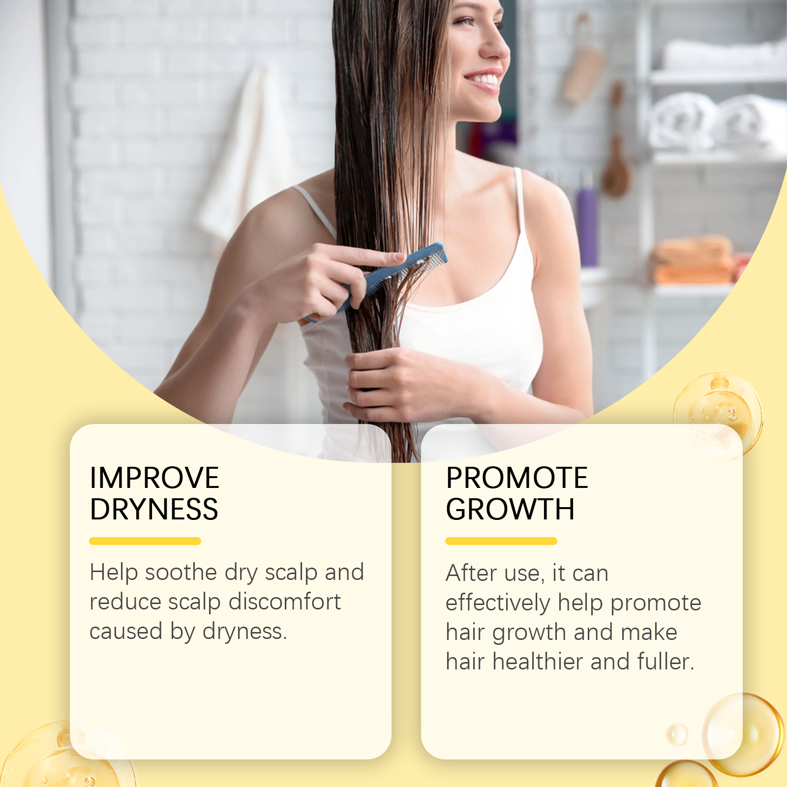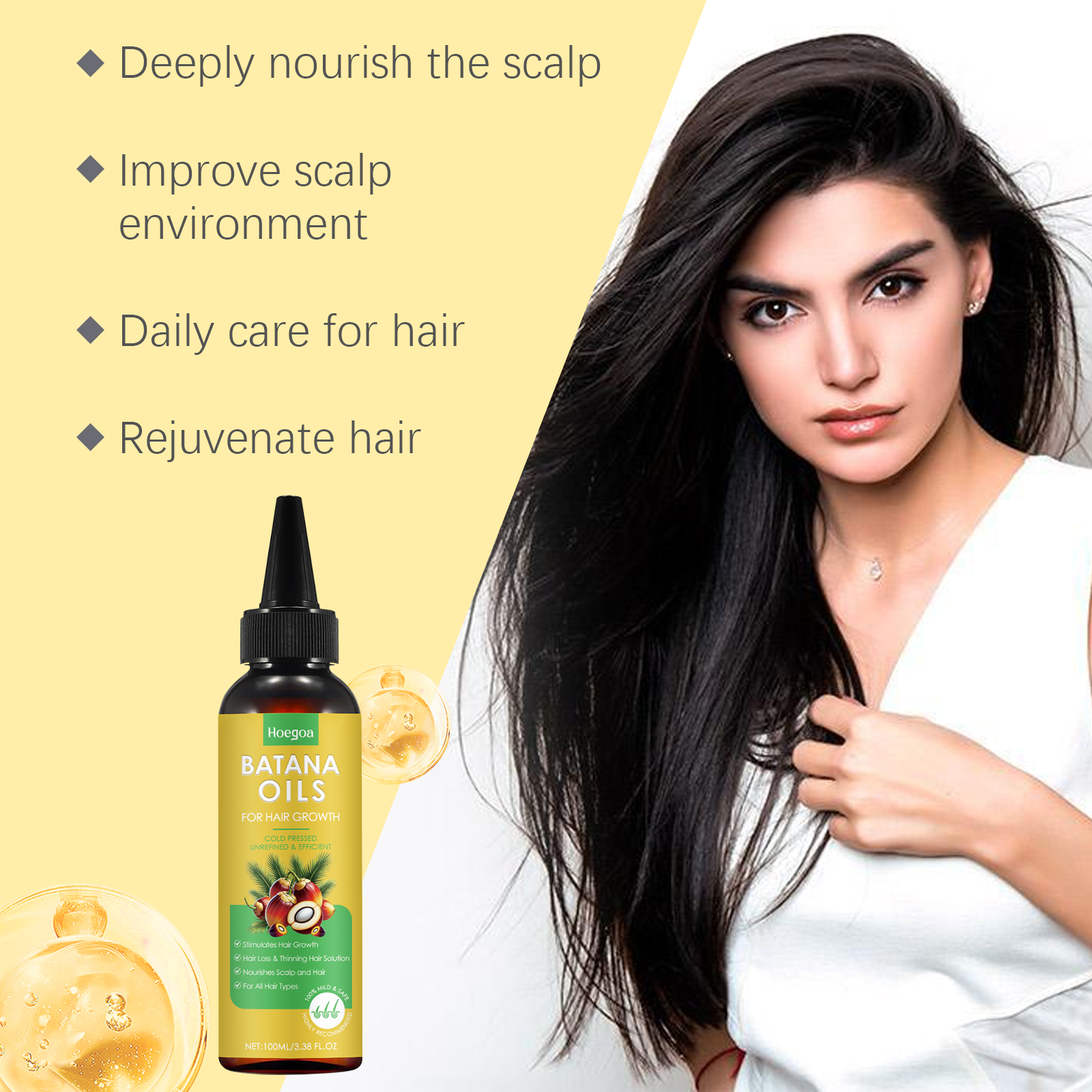 Our Batana hair oil contains glycerin, tocopherol (vitamin E), keratin. It can help soothe dry scalp and reduce scalp discomfort caused by dryness. Its use is very simple: 1. After shampooing; 2. Apply appropriate amount to scalp and hair evenly. 3. Massage gently to promote absorption. When used, it can effectively help promote hair growth, making hair healthier and fuller.