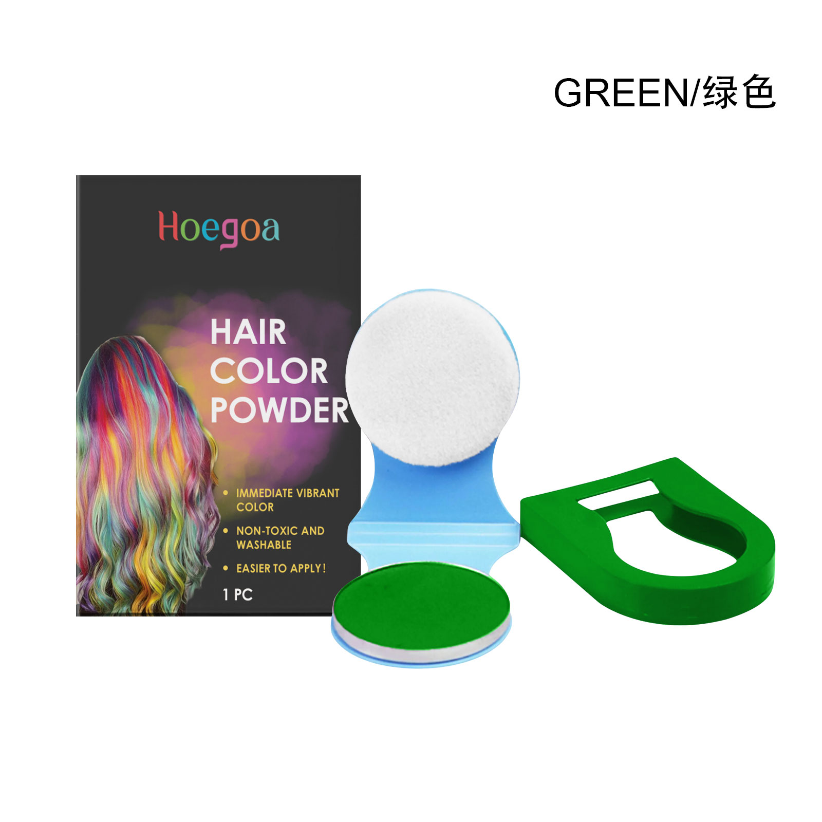 Our hair dye powder compact (green) is carefully formulated with titanium dioxide and silicon dioxide. Designed specifically for easily enhancing your beauty and attracting others' attention. The usage method is extremely convenient: Clean your hair and keep it dry. Open this product and clip it onto your hair. Gently pull to remove the dye and you will get colored hair. When washing, just rinse it off with shampoo or clean water. And it helps you enjoy a charming hair dye that can be easily completed in just a few minutes, saving your time and energy.