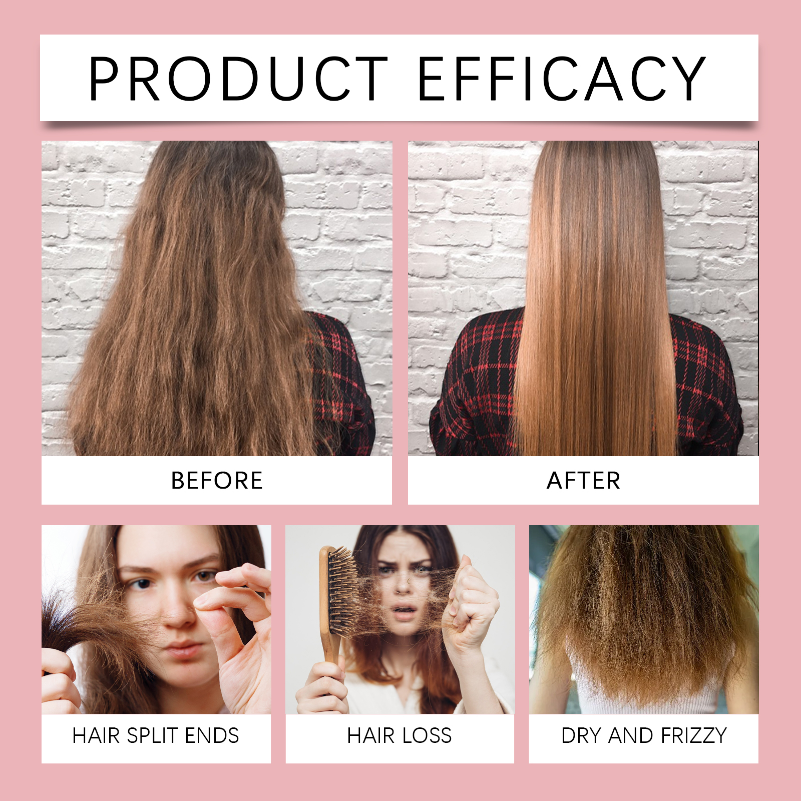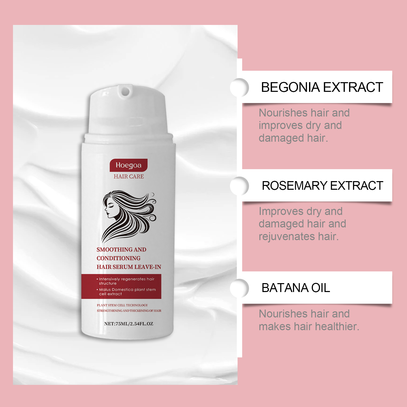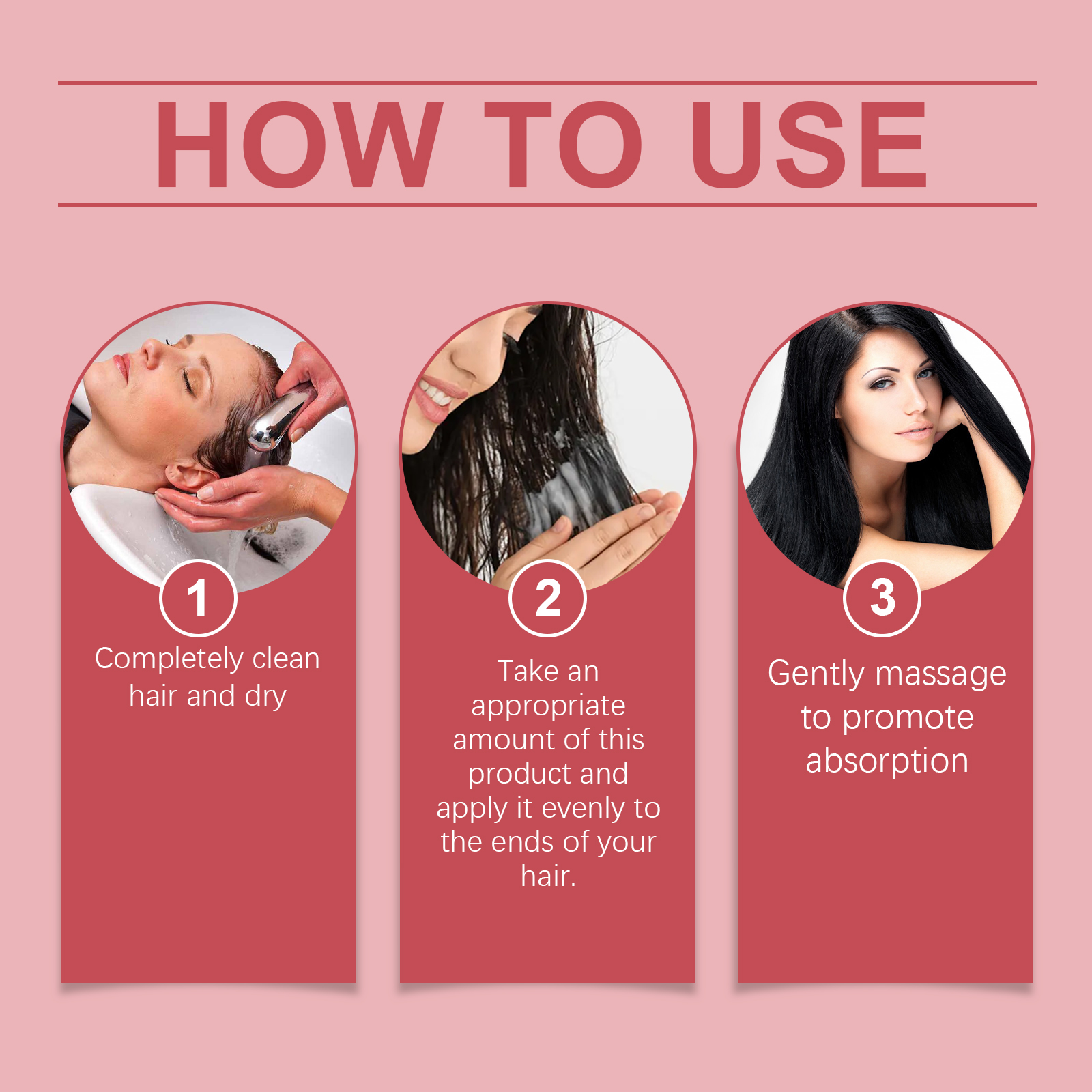 Our leave-in hair serum contains begonia extract, rosemary extract, Batana oil. It can effectively prevent split ends, reduce frizz, and make hair smooth and soft. Its use is simple: 1. Thoroughly clean and dry your hair; 2. Apply appropriate amount of this product evenly to the ends of hair. 3. Massage gently to promote absorption. Lock the moisture of the hair, keep the hair moist for a long time and improve the flexibility of the hair.