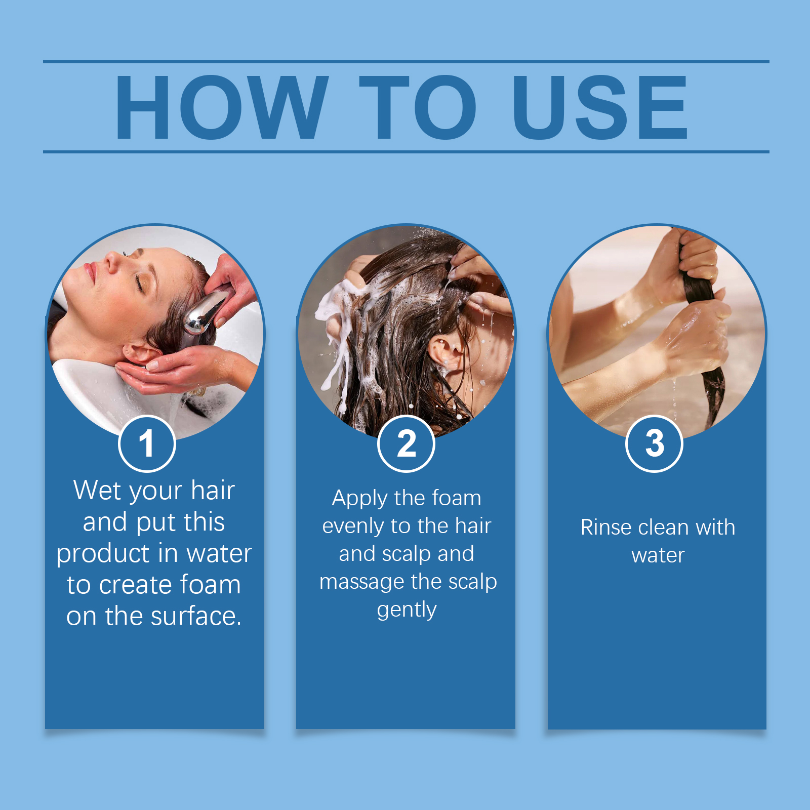Our shampoo contains coconut oil, olive oil. It gently nourishes the scalp and hair. Its application method is simple: moisten the hair Put this product in water, create a foam on the surface, apply the foam evenly to the hair and scalp, gently massage the scalp, rinse off with water. It can also enhance the health of the hair root and promote hair regeneration.