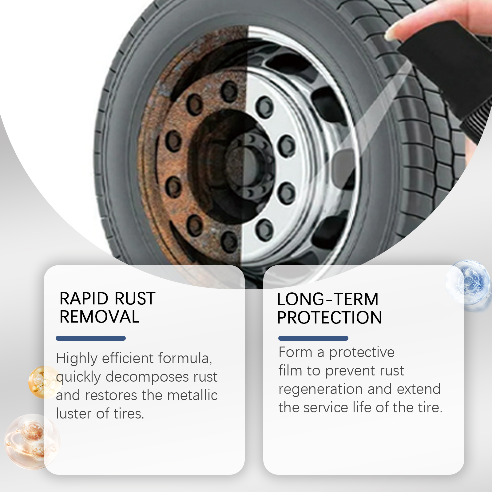 Our car tire rust removal spray contains citric acid, EDTA disodium, and sodium gluconate. It can form a protective film to prevent rust re-generation and extend the lifespan of the tires. The usage method is very simple: clean and dry the metal surface, evenly spray the rust remover onto the metal surface of the tire about 10-15 centimeters away from the surface, wait for 5-10 minutes, wipe off the dirt with a sponge, rinse with clean water, and wipe off the excess detergent with a towel. It can also quickly break down rust and restore the metallic luster of the tire.