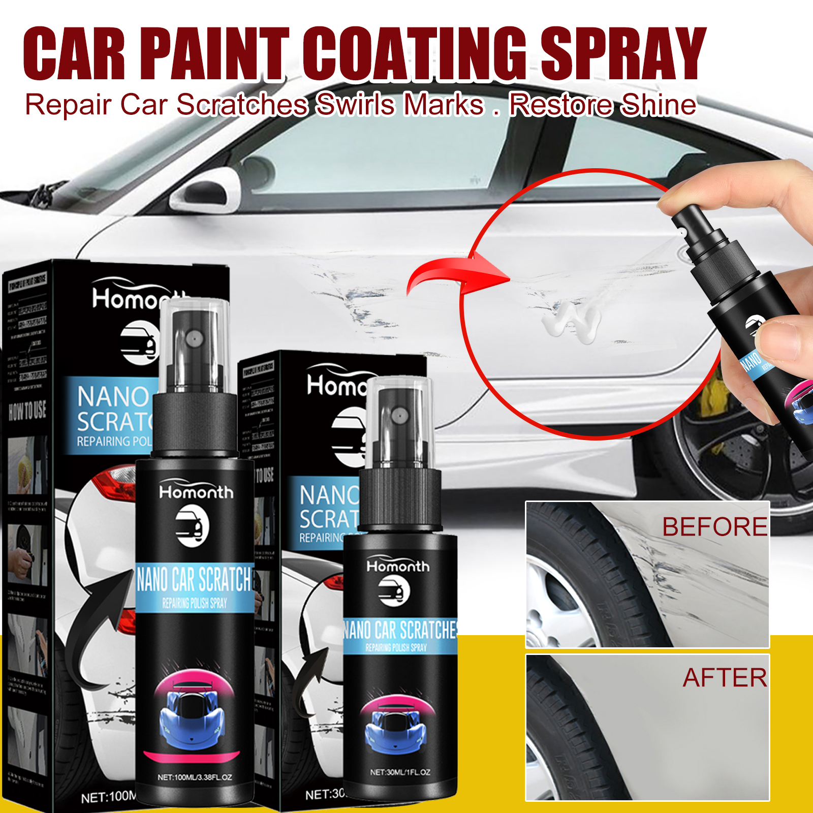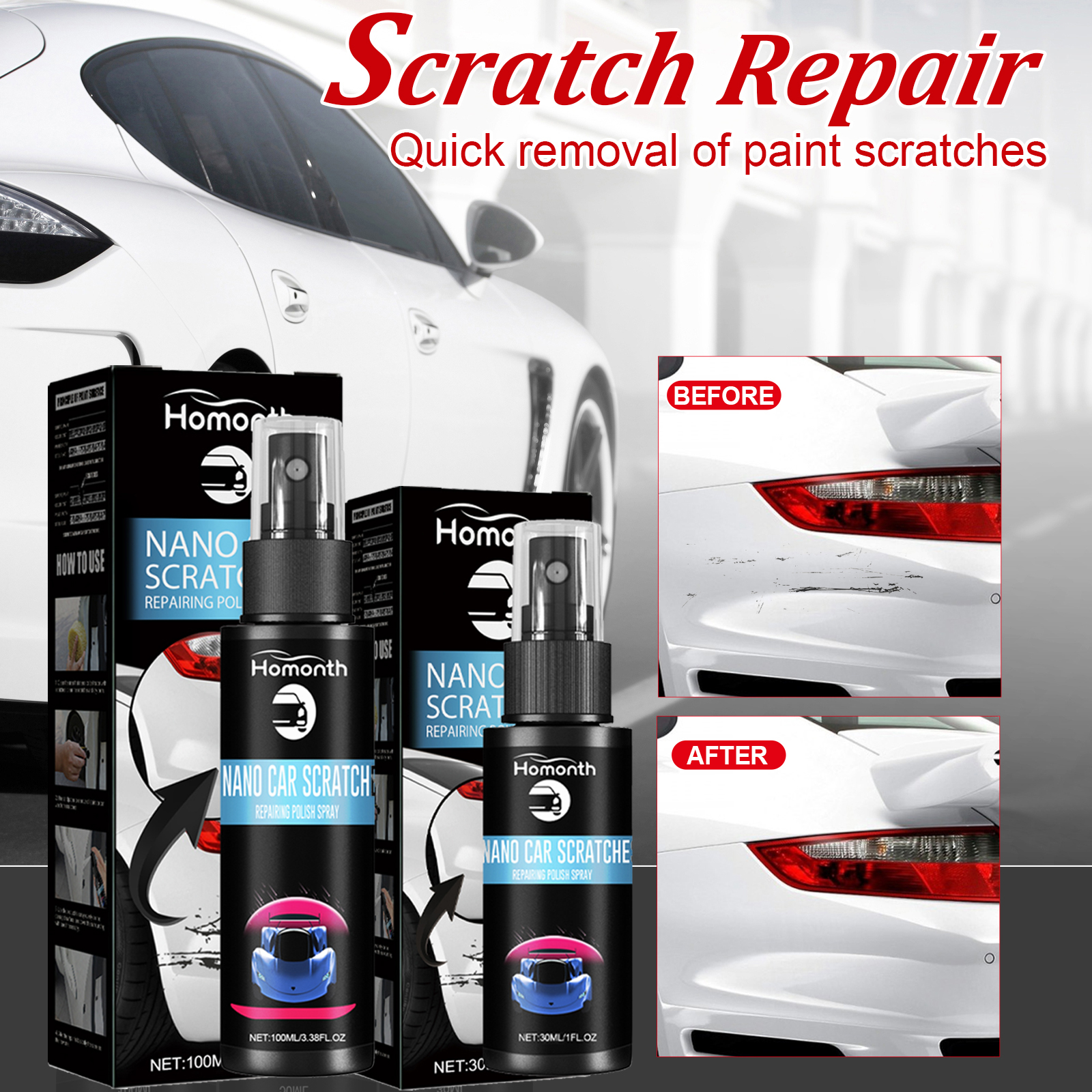 Our scratch repair spray contains polysiloxane, other nanomaterials. It removes paint scratches quickly. Its use is simple: clean and dry the surface, spray on the surface or sponge where the scratch is, wipe the scratch on the painted surface with a towel or sponge until the scratch is gone. Repair car scratch vortex marks, easy to use, save time.