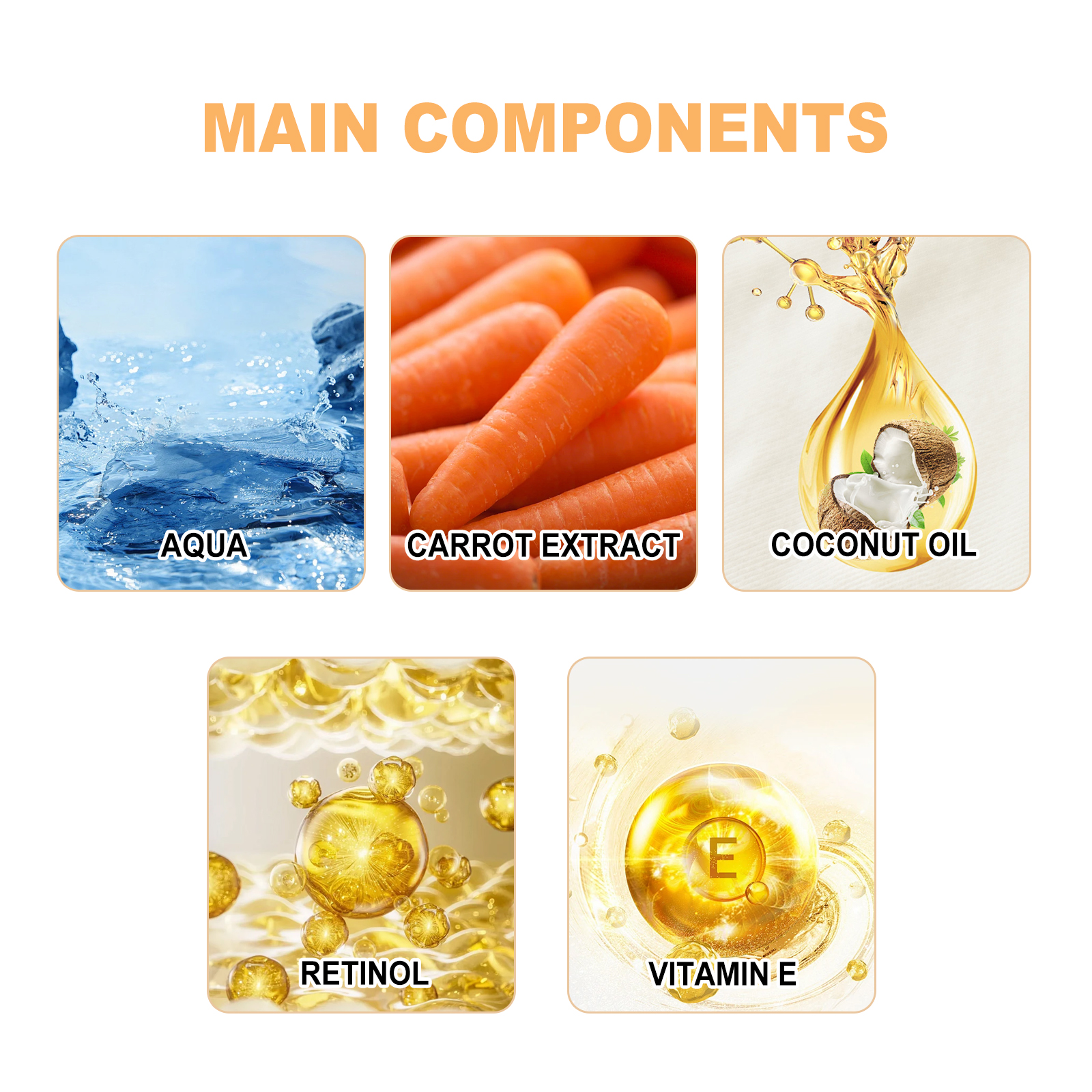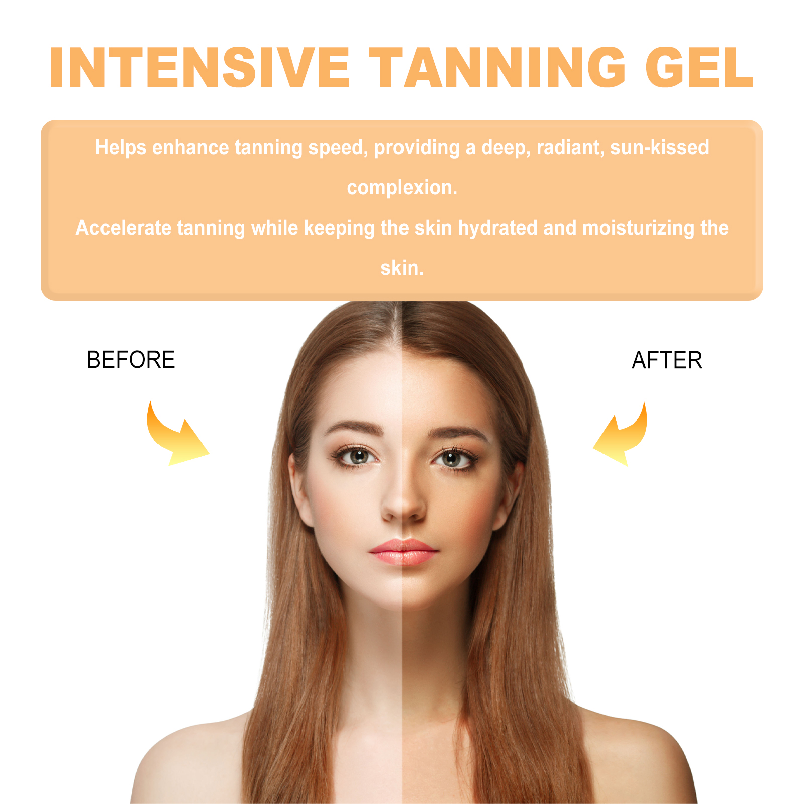 Our Intensive Tanning Gel contains Daucus Carota Sativa(Carrot)Root Extract, Cocos Nucifera(Coconut)Oil, Retinol. It helps you tan quickly while continuing to moisturize your skin during the tanning process, providing deep, rich, radiant tanned skin. The way to use it is simple: apply it evenly all over the skin before exposure to the sun. Create a natural summer tan that moisturizes against wrinkles, light-induced skin aging, and gives you an even tan.