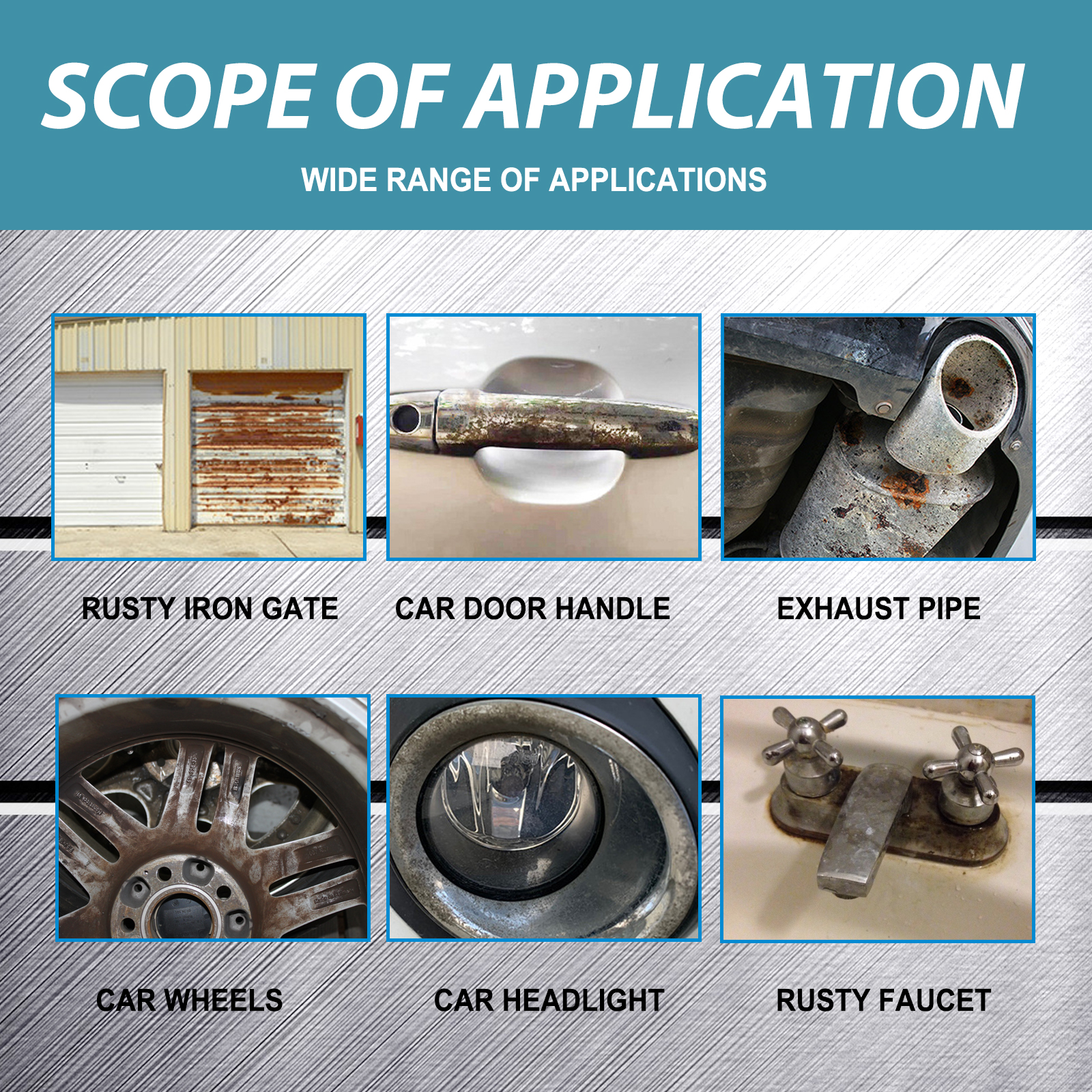 Our Iron Powder Remover contains Inorganic Acids, Corrosion Inhibitors, Surfactants. It can effectively dissolve and remove the iron powder attached to the surface of the car, as well as metal particles produced by vehicle parts such as iron brake pads, which can protect the car paint from the erosion of iron powder and other corrosive pollutants, oxidation and rust. Its use method is very simple: shake well before use, spray the product on the surface, clean the surface until no rust. It can make the appearance of the car fresher, restore the gloss of the paint, and make the body look brighter.