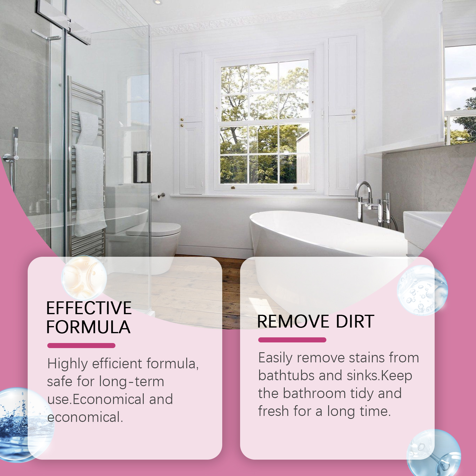 Our bathroom detergent contains disodium EDTA, sodium bicarbonate, lauryl ether 7. It prevents dirt from accumulating again. Maintain bathroom hygiene to reduce bacterial growth. No pungent smell, more comfortable to use. Its use is simple: spray the detergent on the area that needs to be cleaned, then clean it with a towel or sponge or other tool, and finally rinse with water. Efficient formula, long-term safety. Economy and economy. Easy to remove stains from bathtubs and sinks. Keep the bathroom clean and fresh for a long time.