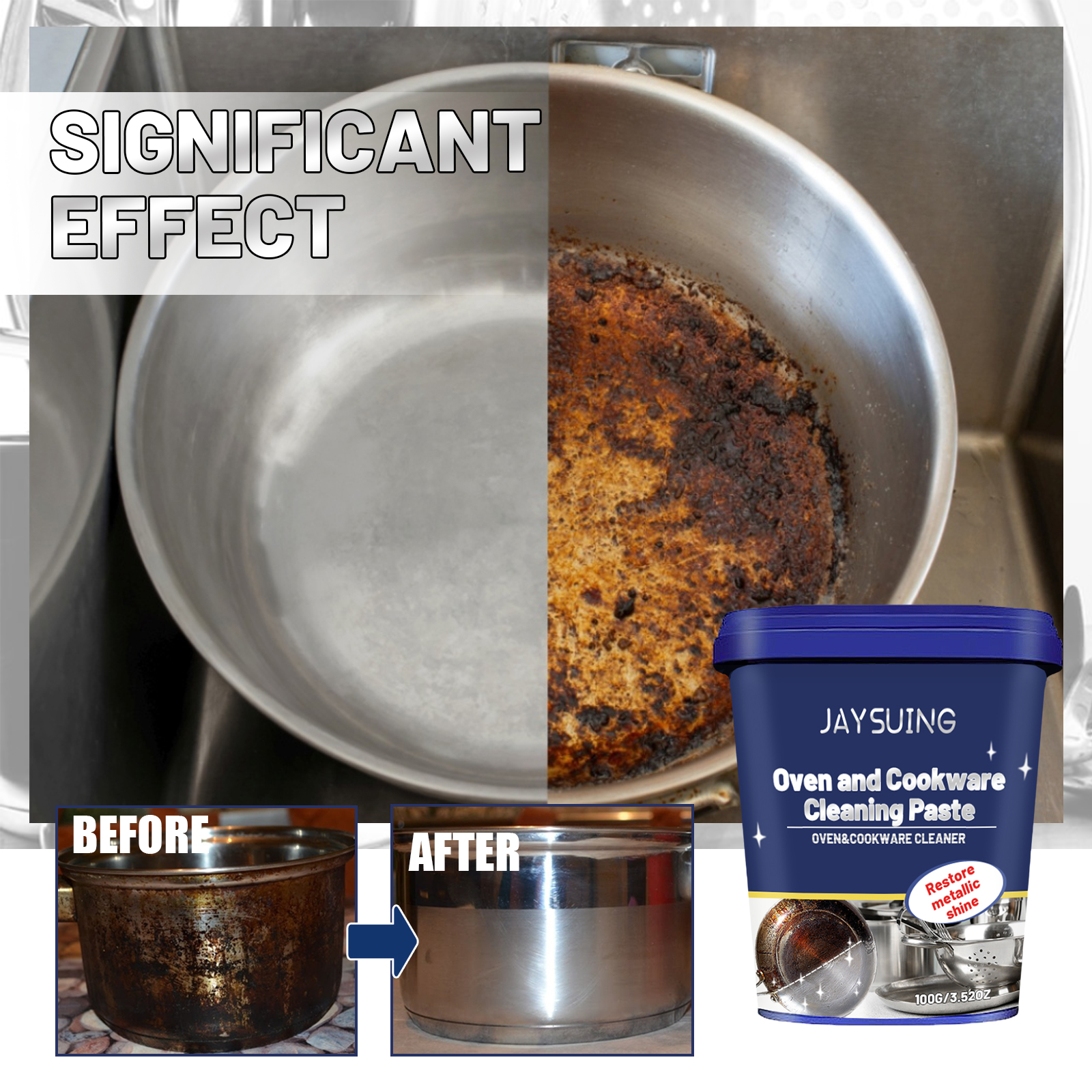 Our stainless steel cleaning creams contain surfactants, metal chelators, penetrants. It can quickly remove rust, decompose deep rust and grease, remove rust and polish, anti-oxidation, form a protective layer on the surface to rust, comprehensive maintenance. Its use method is very simple: use a cleaning pad to take an appropriate amount of this product; Wipe repeatedly on the dirt; Rinse with water. Stainless steel cleaning cream is highly effective in removing oil stains and stains, harmless to hands when used, and the formula is gentle.