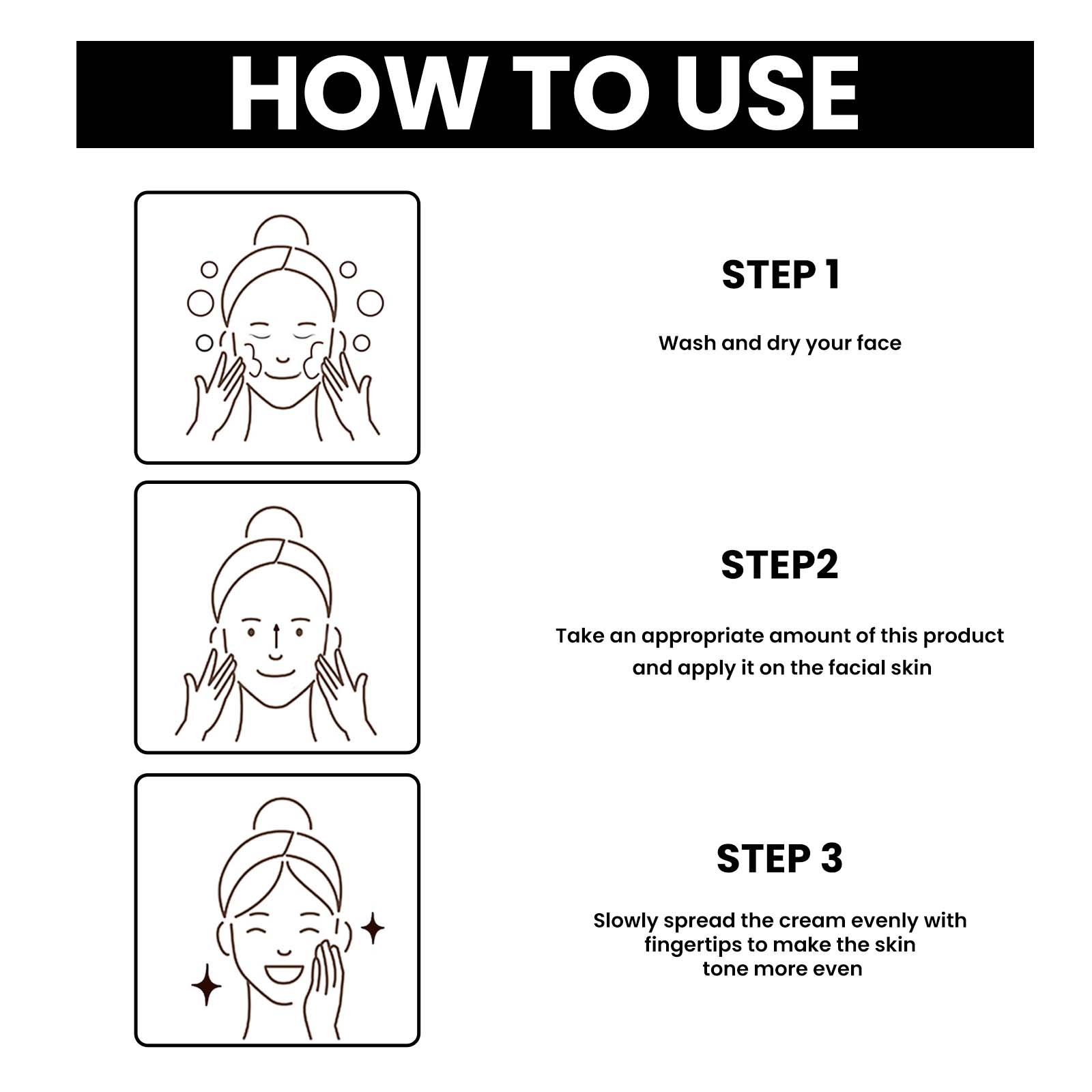 Our moisturizing cream contains collagen and hyaluronic acid. It can cover sun spots, birthmarks, and marks on the skin for a more even skin tone. Provides the skin with the moisture it needs to protect it from external factors. The way to use it is simple: Step 1, wash and dry your face. Step 2: Apply an appropriate amount of the product to the facial skin. Step 3, apply the cream slowly and evenly with your fingertips for a more even skin tone. It also contains collagen and hyaluronic acid, which can moisturize the skin and even the complexion, help increase the elasticity of the skin and reduce the appearance of wrinkles.