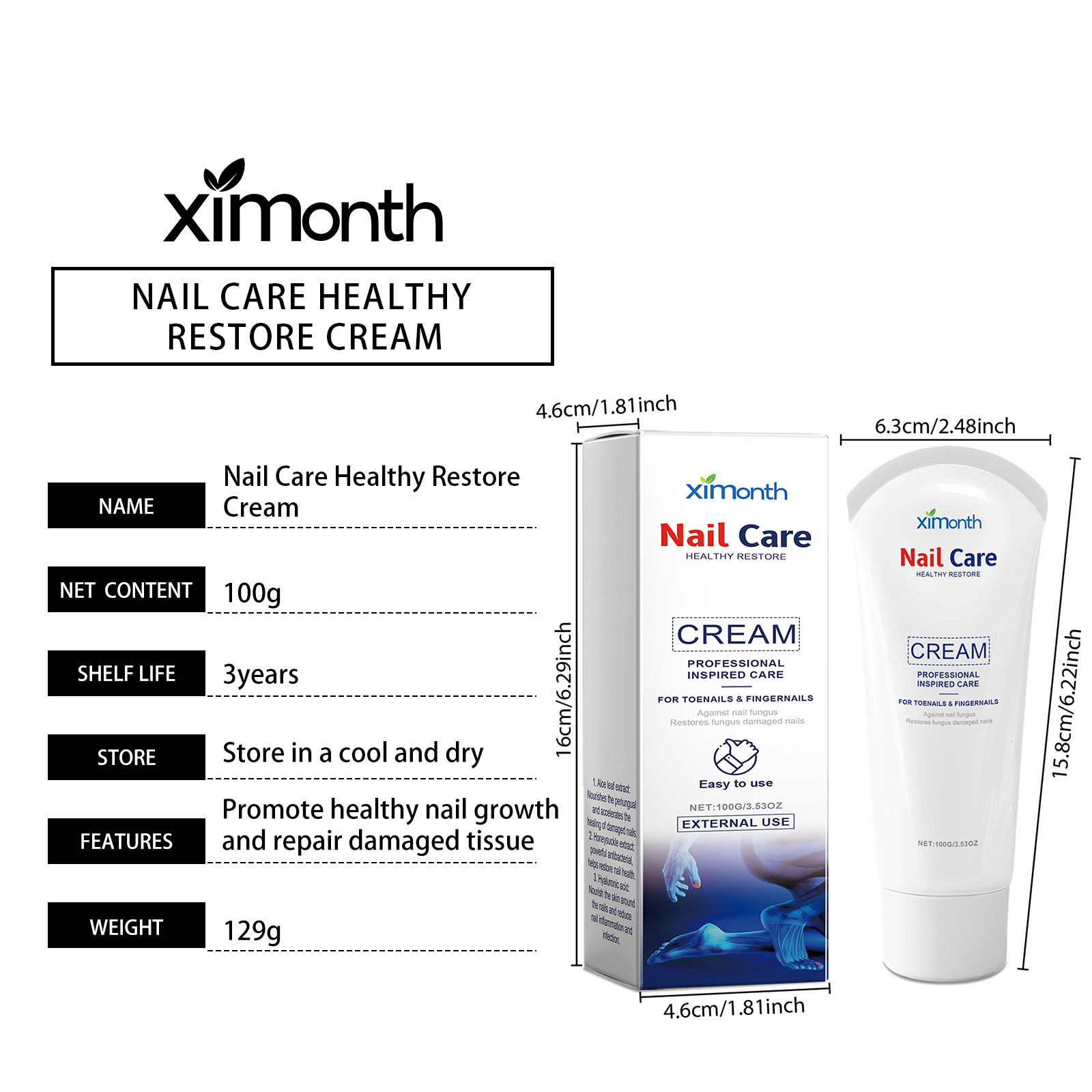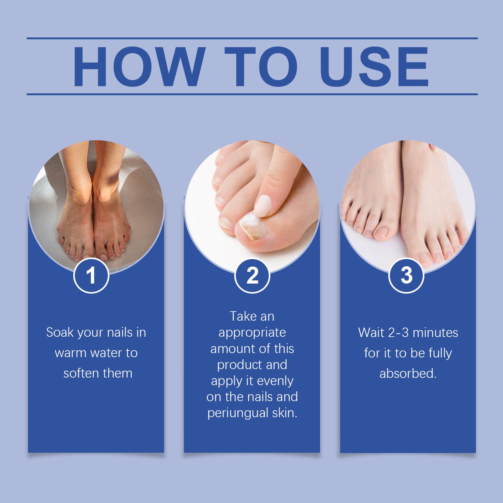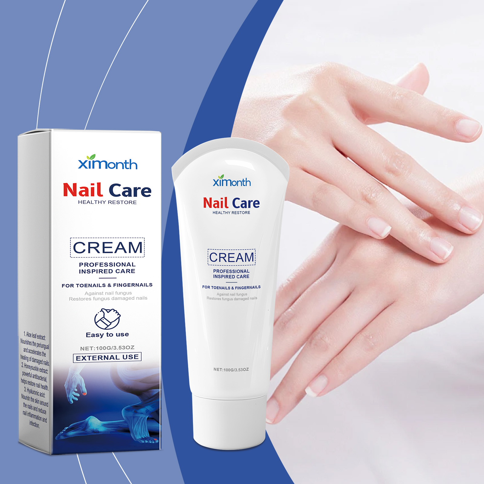 Our nail care and repair cream contains aloe vera leaf extract, honeysuckle extract, hyaluronic acid. It can effectively kill bacteria, inhibit fungal growth, and quickly onychomycosis. The way to use it is simple: 1. Soak your nails in warm water to soften them; 2. Evenly apply appropriate amount of this product to nails and perinail skin. 3. Wait for 2 to 3 minutes until fully absorbed. Penetrate into the root of the nail to promote healthy nail growth and repair damaged tissue.