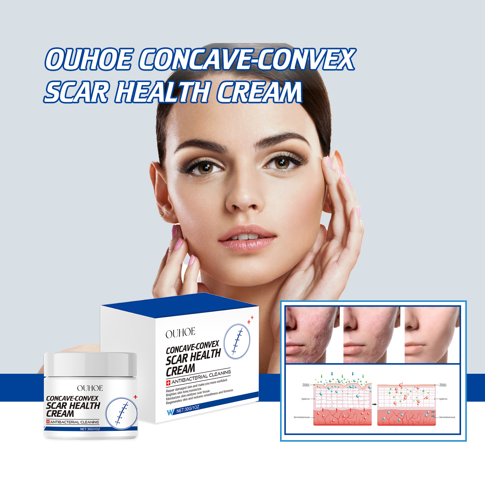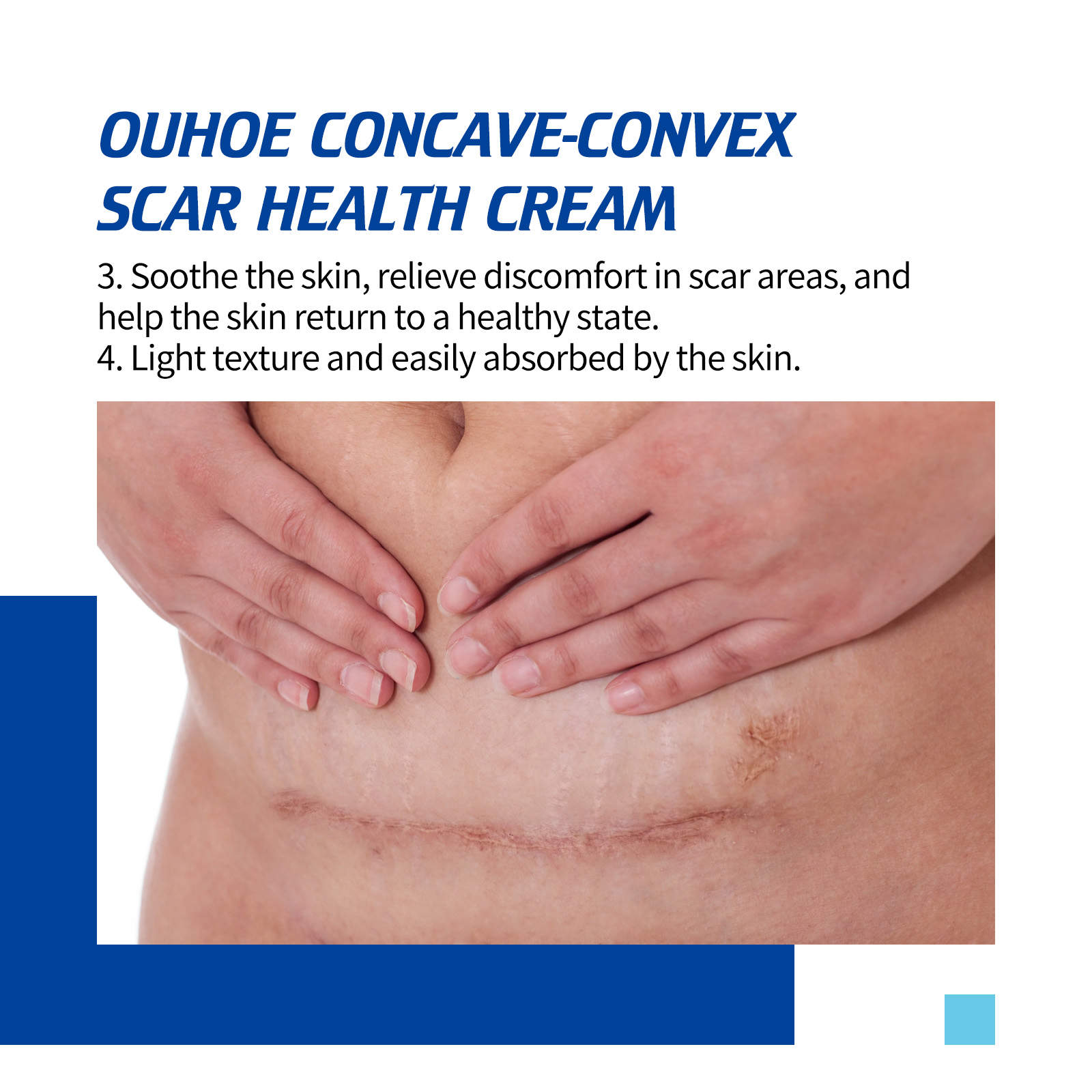 Our Concave-Convex Scar Health Cream contains Allantoin, Aloe Barbadensis Leaf Extract, Camellia Sinensis Leaf Extract. It can effectively fade scars, improve skin quality, restore even smooth skin appearance, moisturize skin, make it soft and reduce roughness. Its application method is very simple: clean and dry the skin of the scar area, apply appropriate amount of this product evenly on the skin, massage gently with your hand until absorbed. It can soothe the skin, the discomfort of the scar area, and help the skin to return to a healthy state.