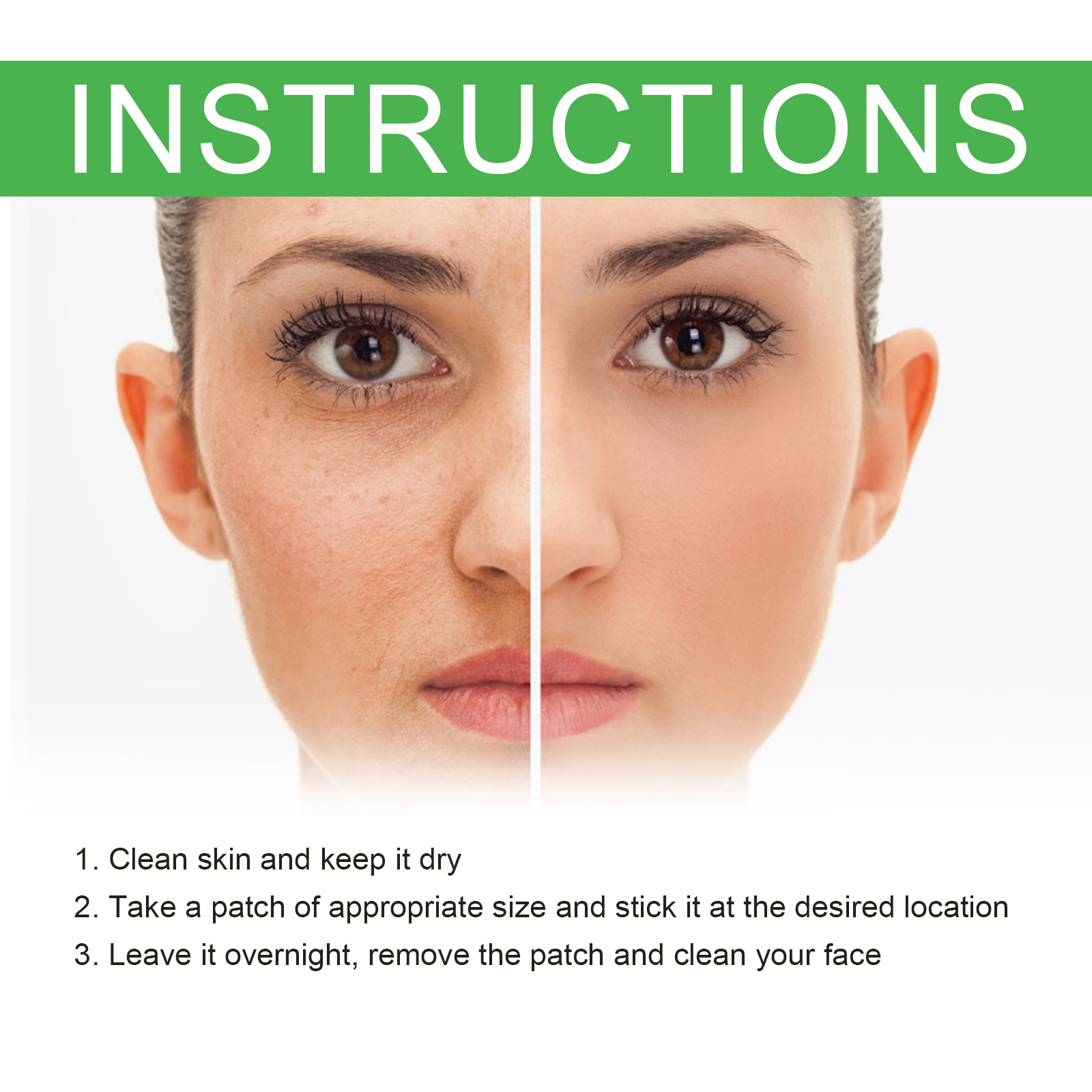 Our face patch contains Melaleuca alternata oil and salicylic acid. It removes acne quickly, promotes faster healing and reduces inflammation, while keeping the area clean and protected, is able to form a protective barrier on the skin, reduces redness, and reduces scarring. The way to use it is very simple: clean and dry the skin, take a suitable size of the patch on the desired location, wait for one night, tear off the patch, and clean the face normally. Easy to use, just stick on the acne area, sleep can eliminate acne save you time and energy.