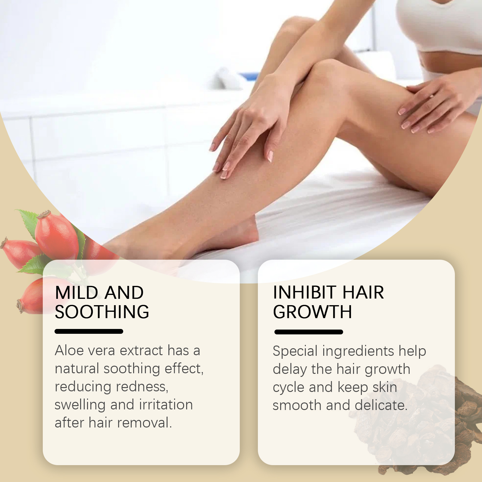 Our Balsamic hair removal oil contains sweet almond oil and aloe vera extract. It can effectively promote skin repair and improve skin damage after hair removal. Its use is simple: attach a dropper. After removing excess hair by any means, apply Cyposrotondos oil to the desired area and repeat each time you remove excess hair. And can reduce the redness and irritation after hair removal.