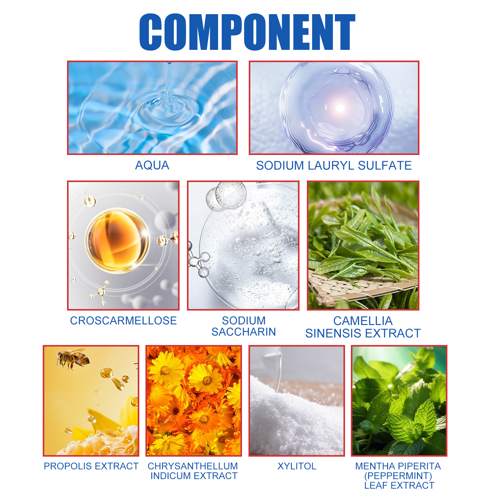 Our Probiotic Brightening toothpaste contains blue: xylitol, propolis extract; Red: Sodium lauryl sulfate, crosslinked carboxymethyl cellulose. It can deeply clean teeth, strengthen tooth enamel, promote overall oral health, effectively remove pigmentation such as tea stains and coffee stains on the surface of teeth, and make teeth whiter and brighter. Its use is very simple: to the appropriate amount of toothpaste, use the correct way to brush teeth for 2-3 minutes, and finally rinse with water. Reduce bad breath and keep your breath fresh and pleasant.