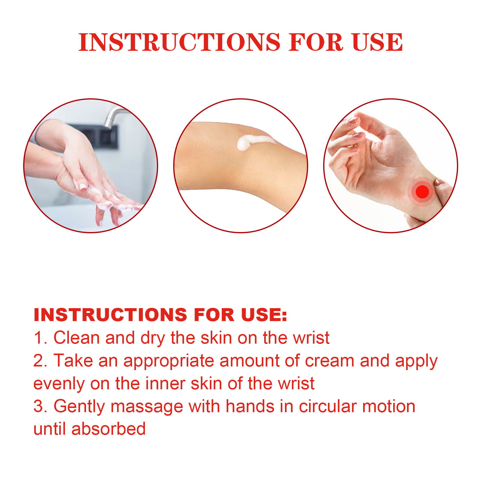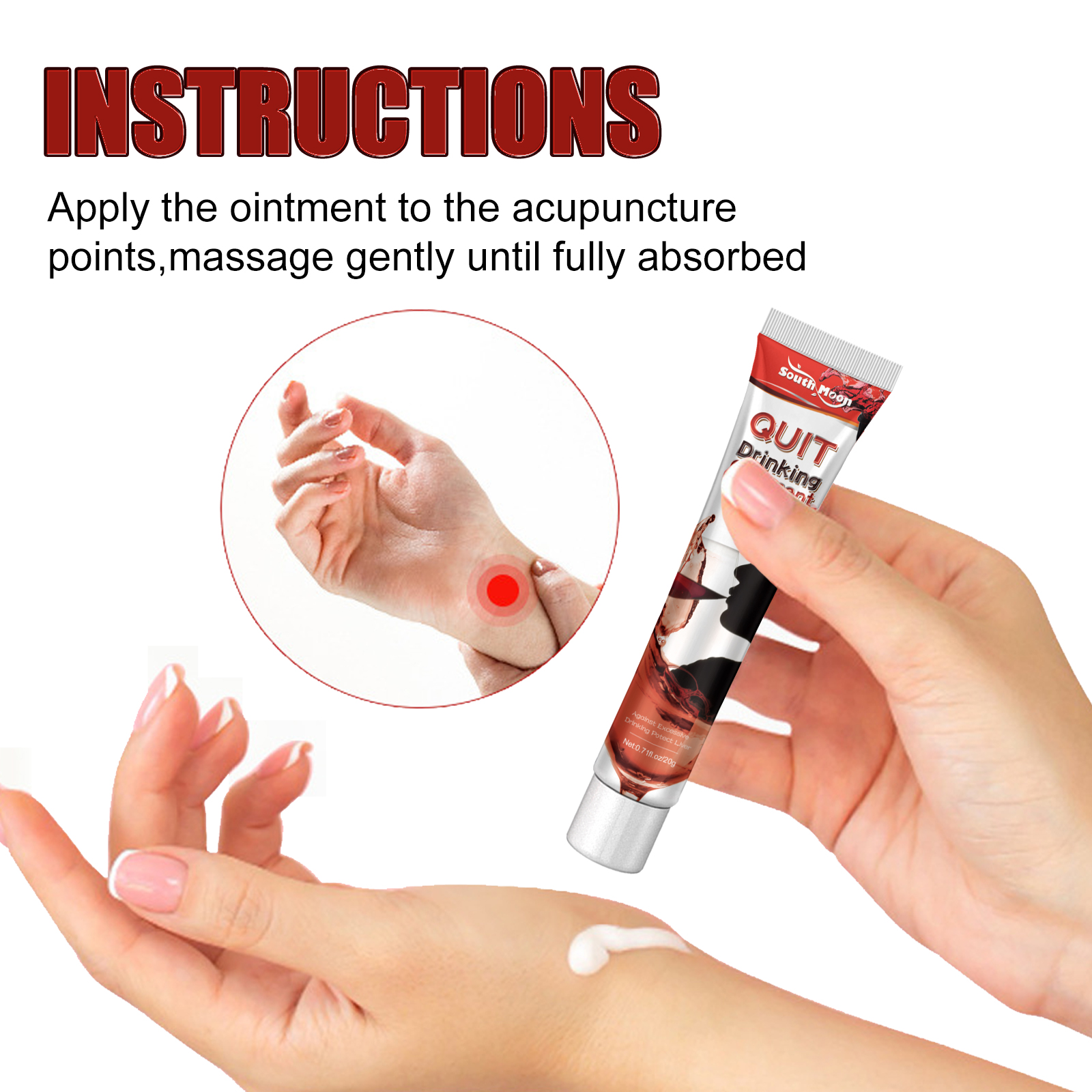 Our Quit Drinking Ointment contains peppermint extract, turmeric extract and pueraria extract. It can effectively symptoms such as dizziness, nausea and fatigue after a hangover. Its application method is very simple: 1. Clean and dry the skin on the wrist, apply an appropriate amount of this product evenly on the inner skin of the wrist, and gently massage with the hand in a circular motion until absorbed. hangovers and nausea and fatigue.