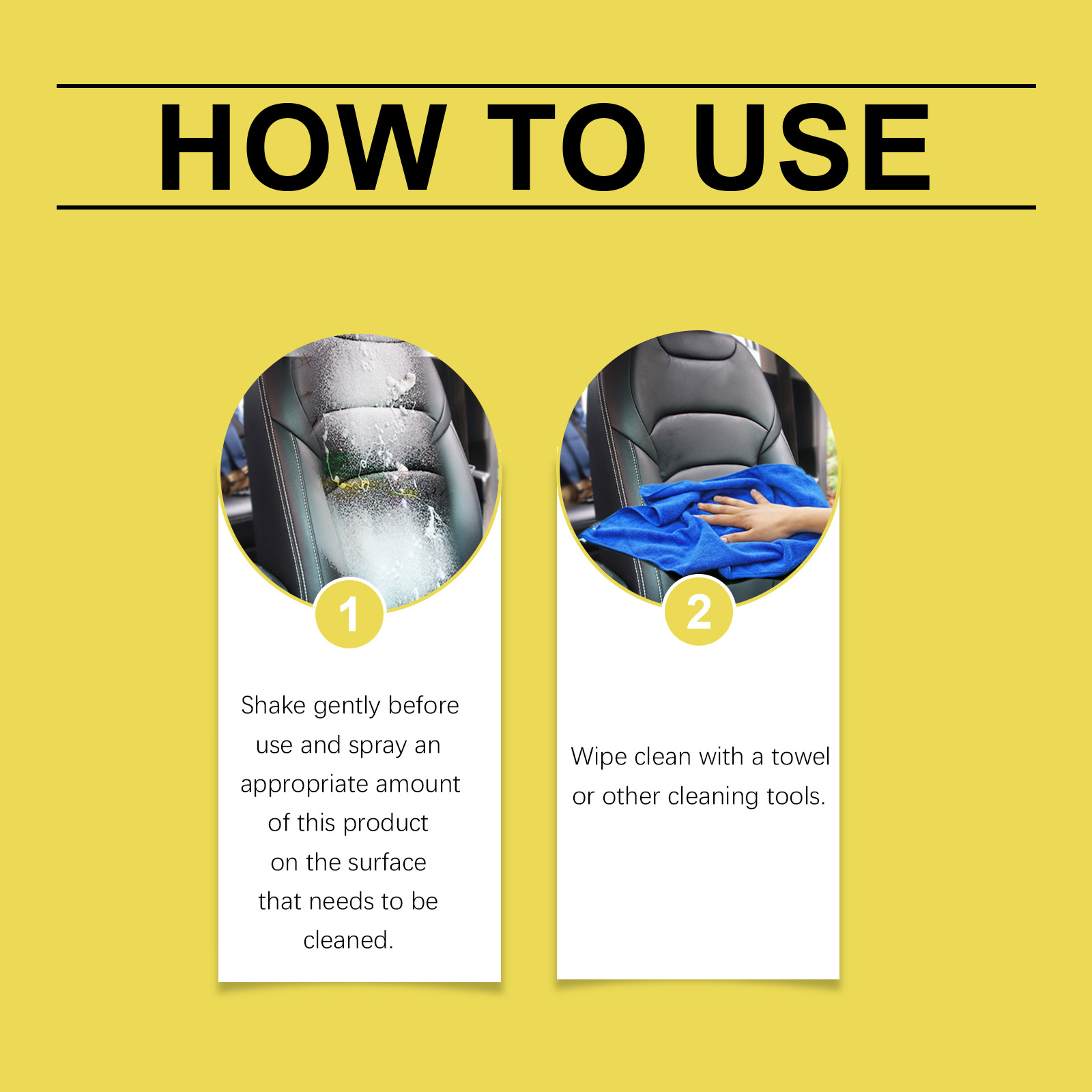 Our versatile foam car cleaner contains lauryl polyether-7 and sodium lauryl polyether sulfate. It can be applied to every part of the car, giving your car interior a new look. Its use method is very simple: gently shake before use, spray the appropriate amount of this product on the surface that needs to be cleaned. Wipe clean with a towel or other cleaning tool. And can effectively remove oil stains, dirt stubborn stains, nourish the surface, keep the car clean and fresh.