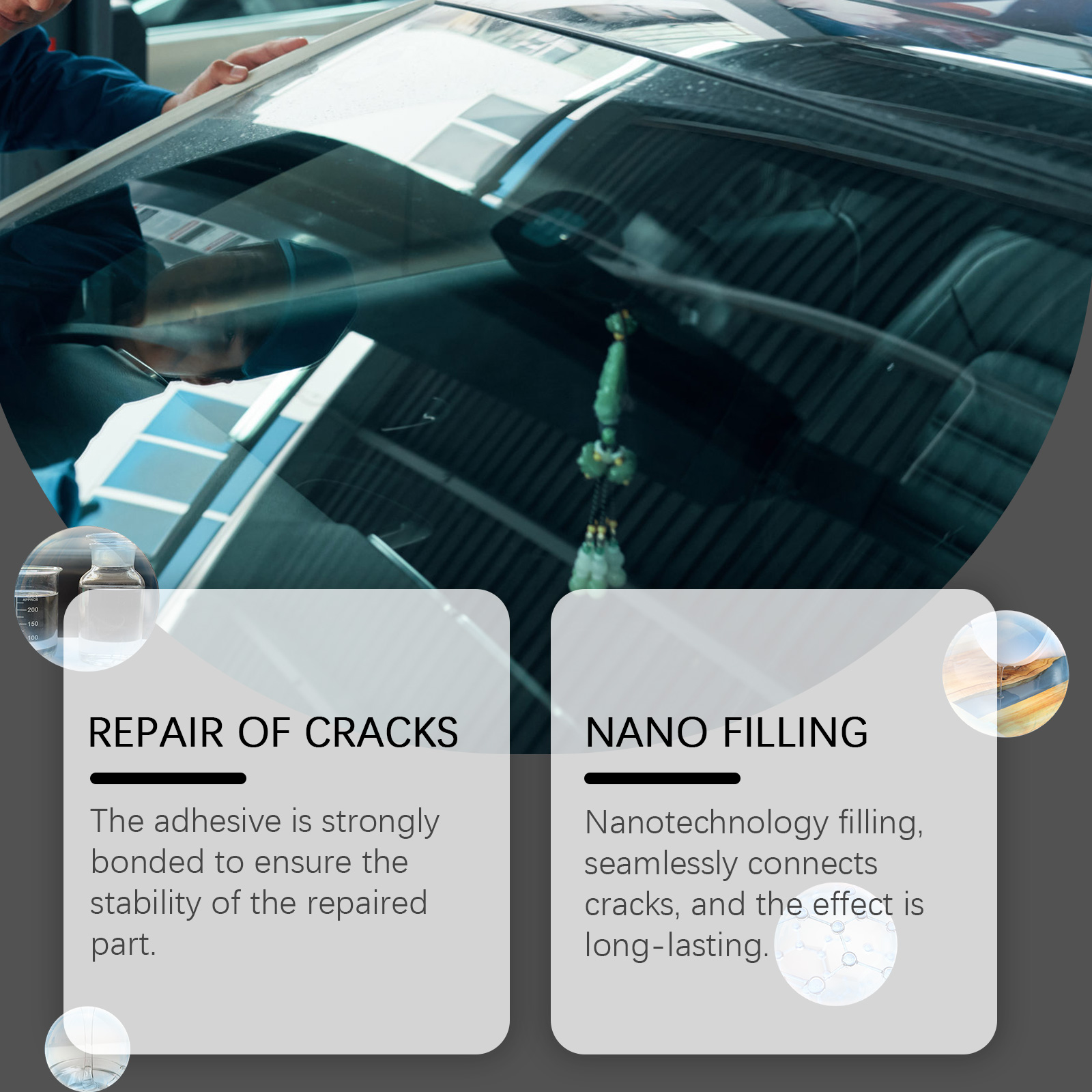 Our windshield repair kit contains UV glue. It can seamlessly connect cracks, and the effect is long-lasting. The method of its use is simple: first, clean and dry the damaged area of the windshield, then squeeze the windshield repair fluid into the crack, glue it to the curing film, cure quickly in the sun for 5 minutes, and then clean the surface with a scraper. And the adhesive has strong bonding force to ensure the stability of the repair site.