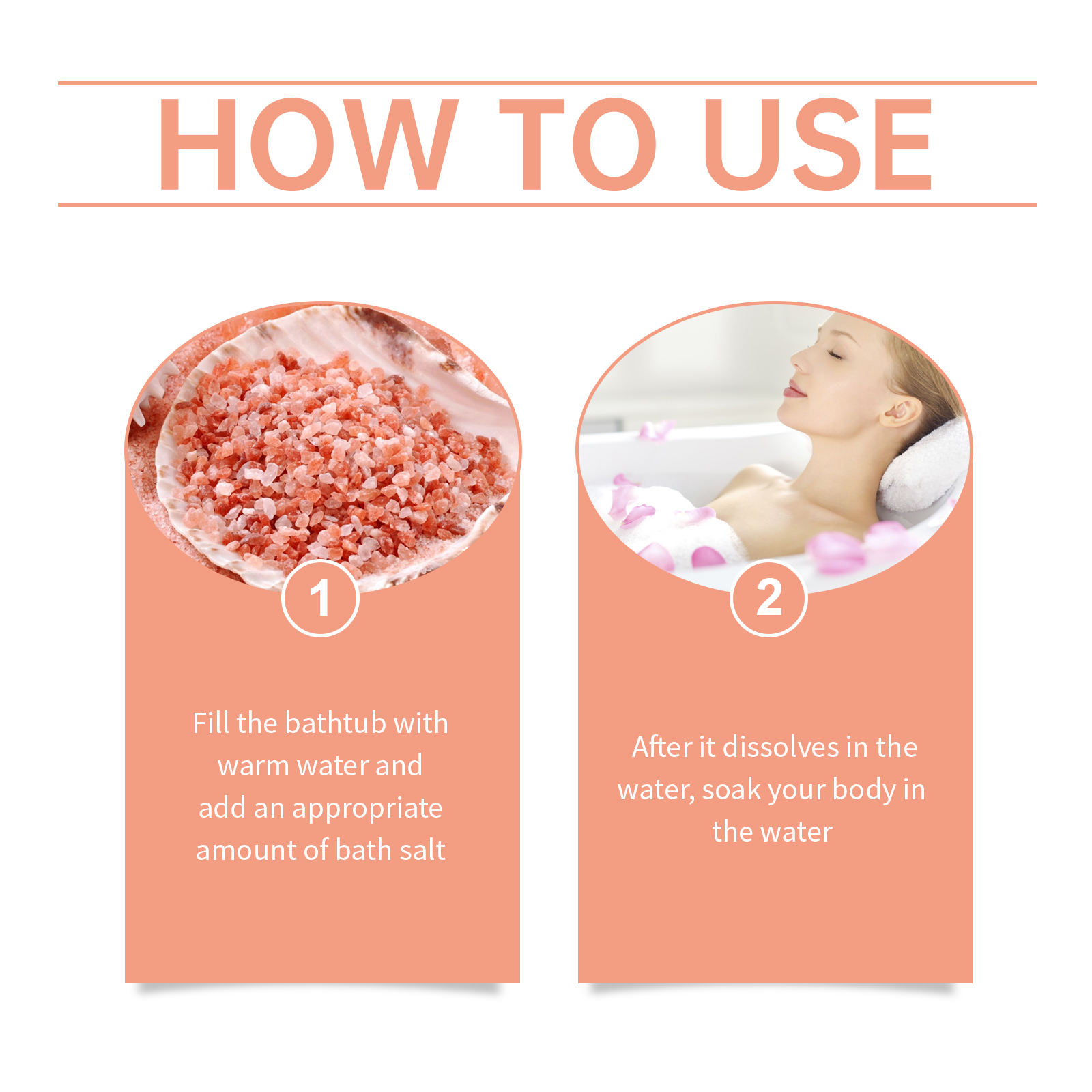 Our rose bath mineral salts contain aloe vera leaf extract, tocopherol (vitamin E). It can deeply nourish the formula and care for every inch of the skin. Its use method is very simple: add warm water to the bathtub, and add the right amount of bath salts, it dissolves in the water, soak your body in the water. And a gentle cleansing formula suitable for sensitive skin.