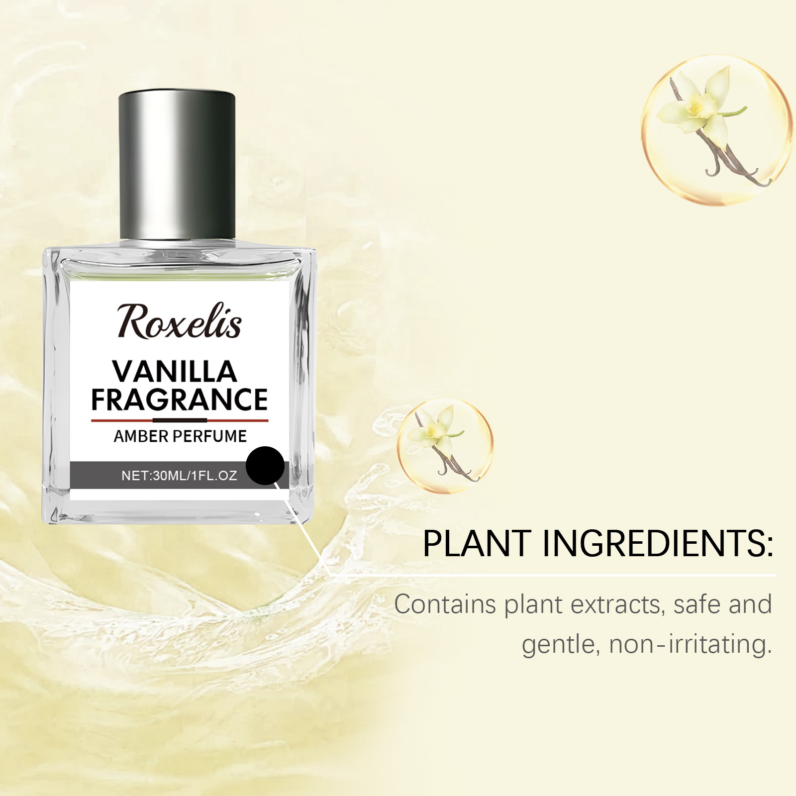 Our vanilla Amber Eau de Toilette contains denatured ethanol and PEG-40 hydrogenated castor oil. It can bring a refreshing and pleasant aroma with a fresh fruity taste, suitable for everyday life and special occasions. The warm amber undertone adds depth and durability to the perfume, exuding an elegant charm. Its application is simple: spray the perfume on the wrists, neck and behind the ears or spray the perfume into the air and into a mist, so that the perfume is evenly dispersed throughout the body, leaving a fragrant aroma. And can be long-lasting fragrance, all day long exudes charming fragrance.