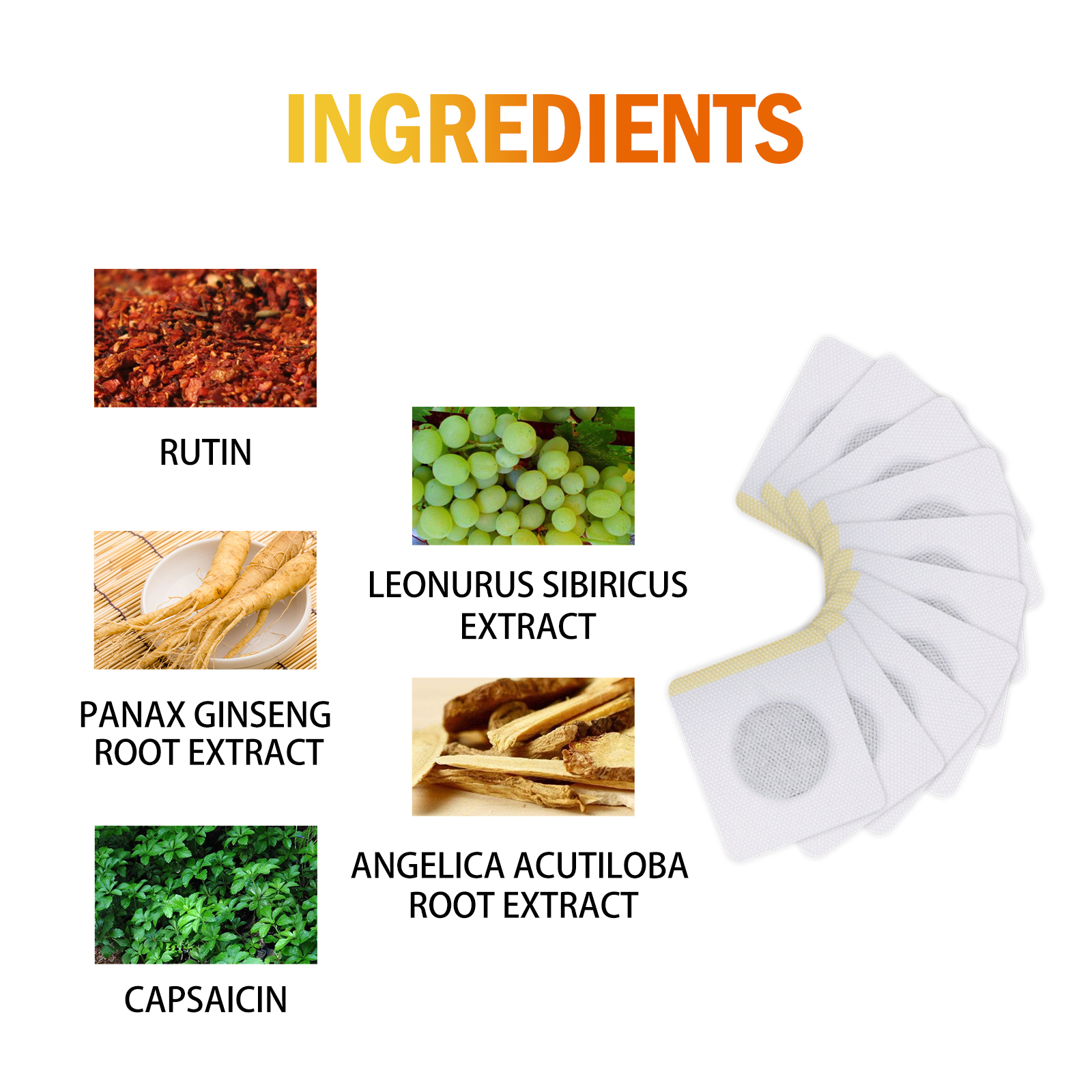 Our slimming patches contain ginseng extract and sophoracosin. It can penetrate deep into the skin, boost metabolism, accelerate fat breakdown, and mildly stimulate. Its use method is very simple: 1. Clean dry belly skin. 2. Take a patch and attach it to your belly button. 3. Wait 8-12 hours before peeling it off. And the effective ingredients in the navel patch can penetrate the skin, promote blood circulation, reduce swelling and make the body line tighter and more smooth.
