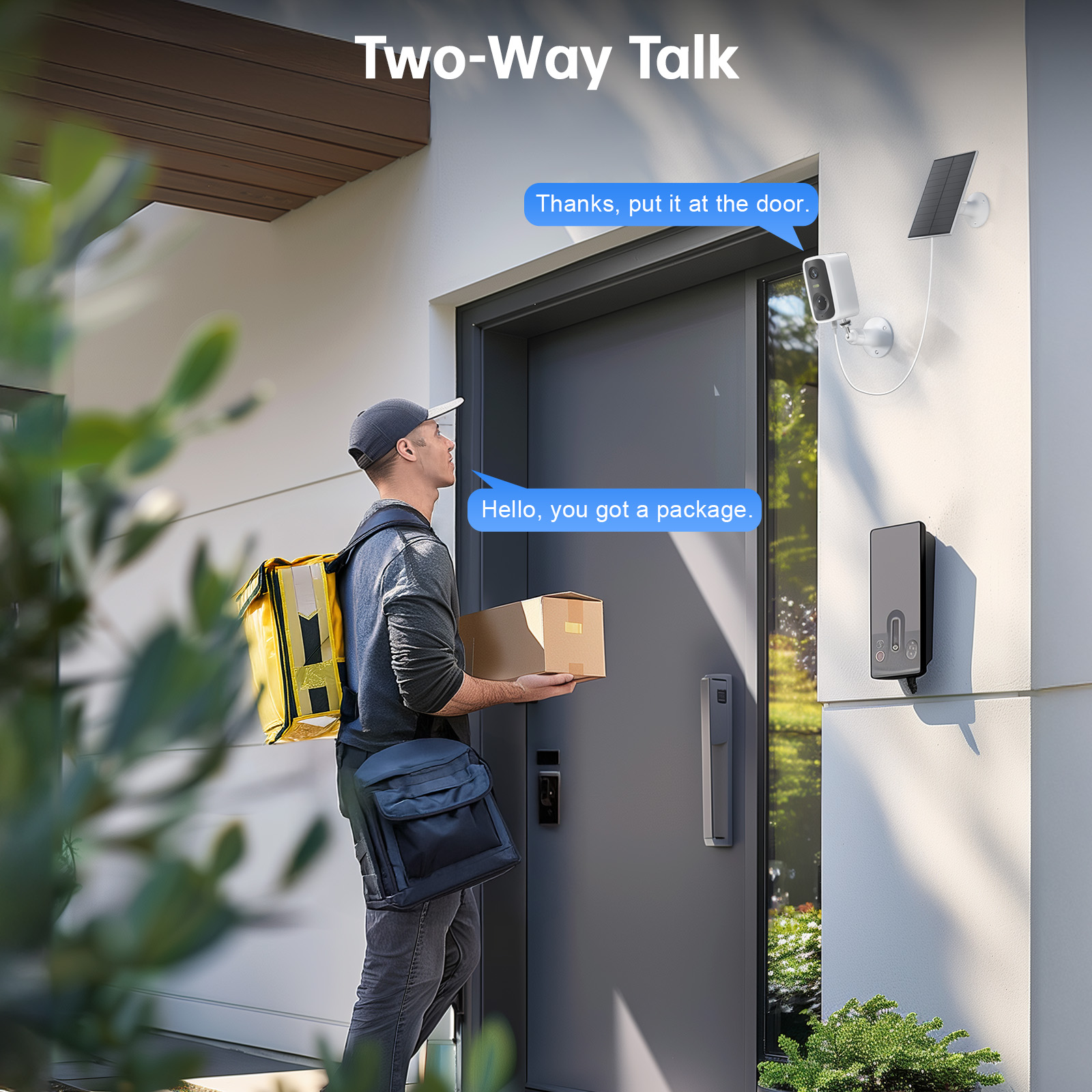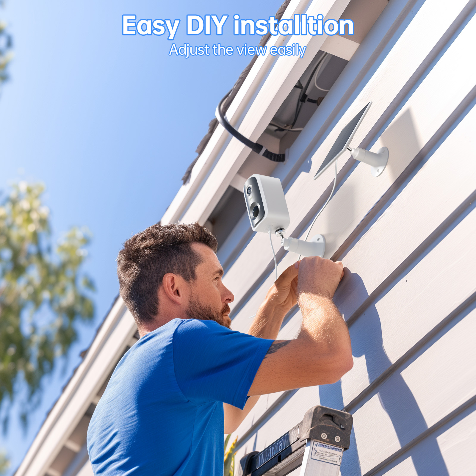 WIFI Rechargeable Battery CAMERA - Low Power Consumption (PIR+motion detection) - Video: Support snapshot and record when trigger alarm. - Notification:Device romote call, Image,Voice detection notification supported. - Function: Audio+lights+2way audio - Light: 4pcs IR light+2pcs white light - Support: TF Card up to 128GB /cloud storage - 2.4G/5G WIFI/Bluetooth - Lens: 3.0mm HD lens - Battery: 5200mA Lithium batteries - Solar Pannel: 1.6W