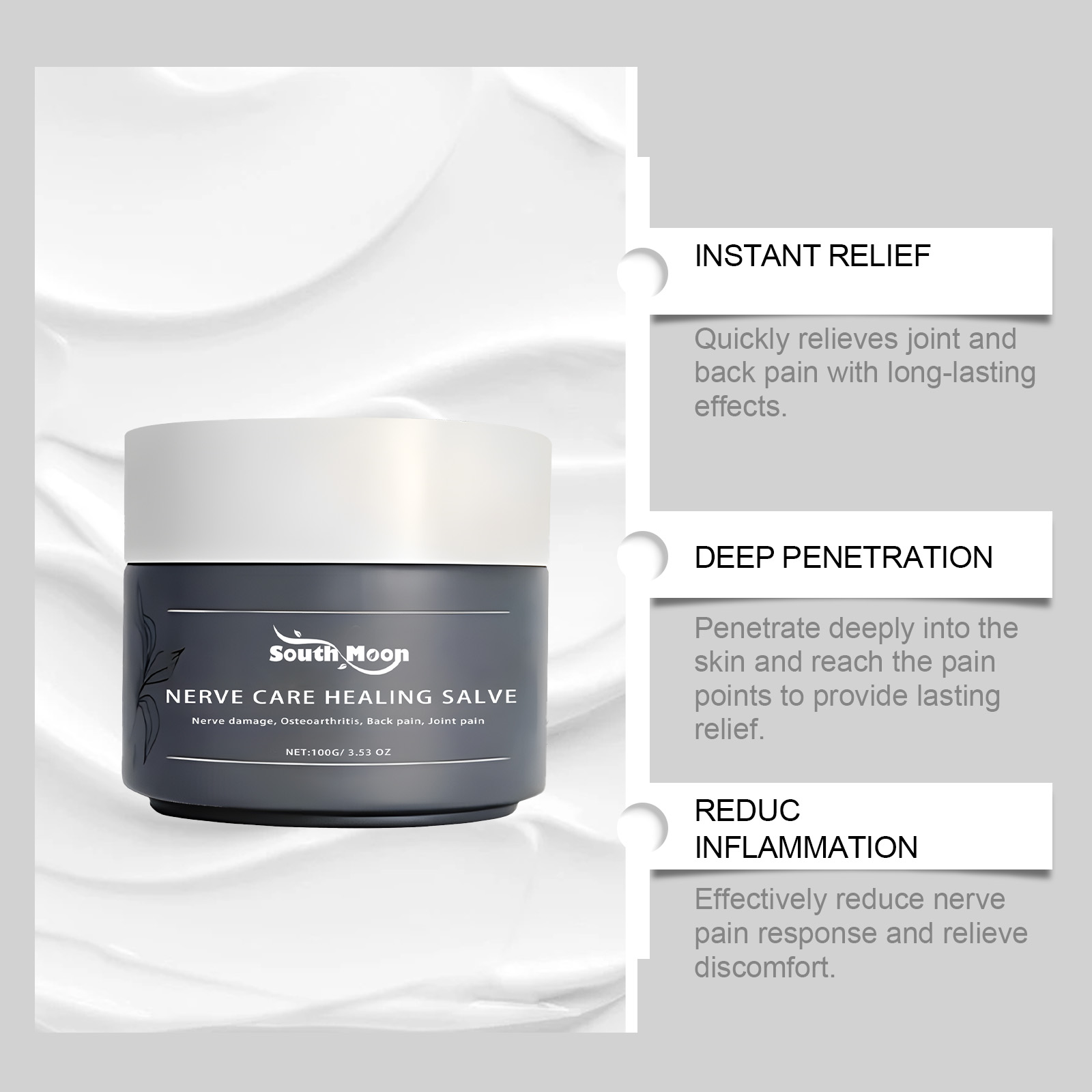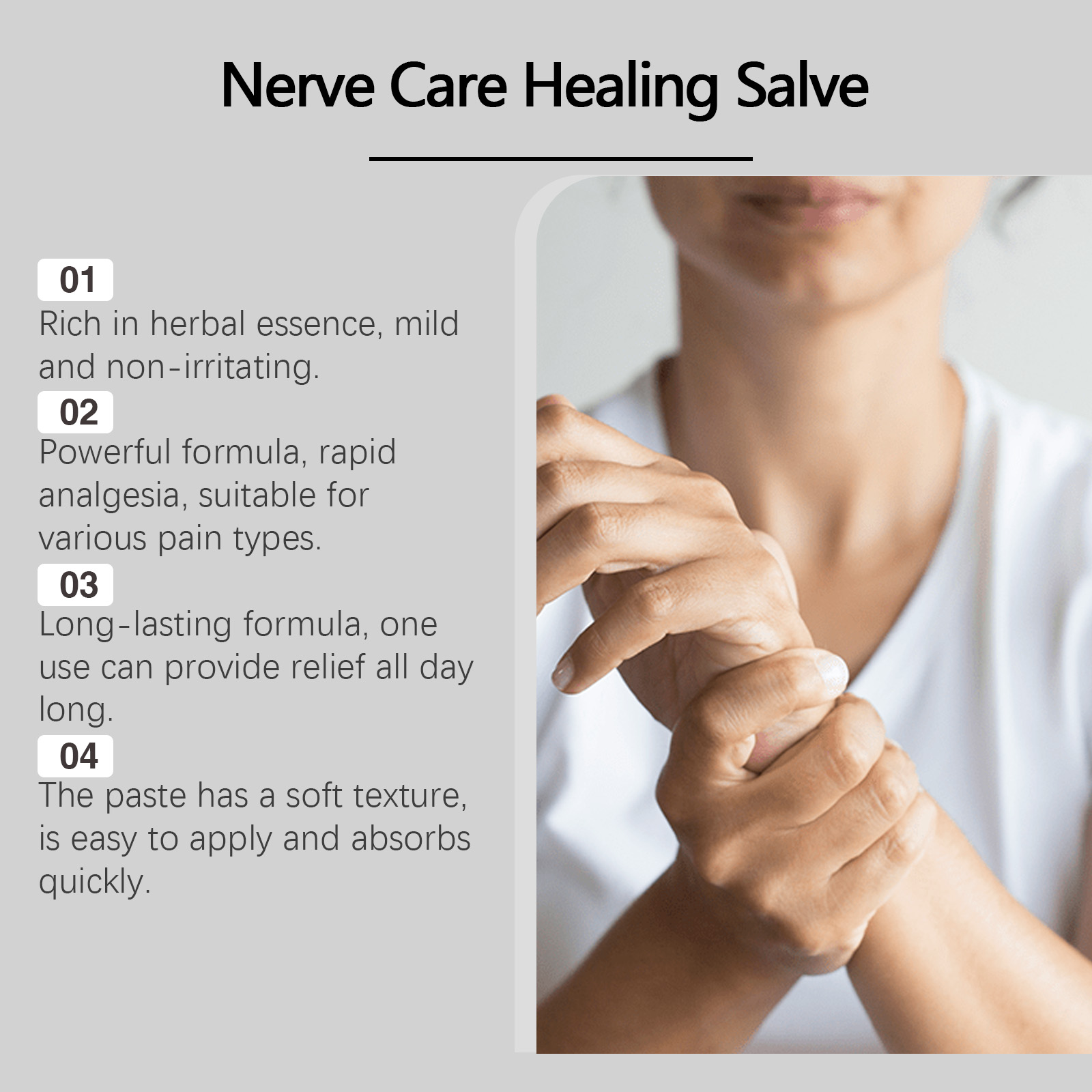 Our bee venom nail repair solution contains carbomer and allantoin. It can improve the resistance of nails to breakage and reduce the risk of accidental breakage in daily life. Its application is simple: thoroughly clean the surface of the nail and the skin around it, keep it dry, gently apply the product to the affected area of the nail and wait for it to dry. And can create the perfect nail surface, helping the nail surface more suitable for subsequent nail care.Our body creams contain coconut oil, castor oil. It can quickly nerve pain. Its use method is very simple: thoroughly clean the skin, dry, apply appropriate amount of this product evenly on the feet, toes, legs, joints, hands, back skin, gently massage to promote better absorption. And can quickly joint and back pain, the effect is long-lasting.
