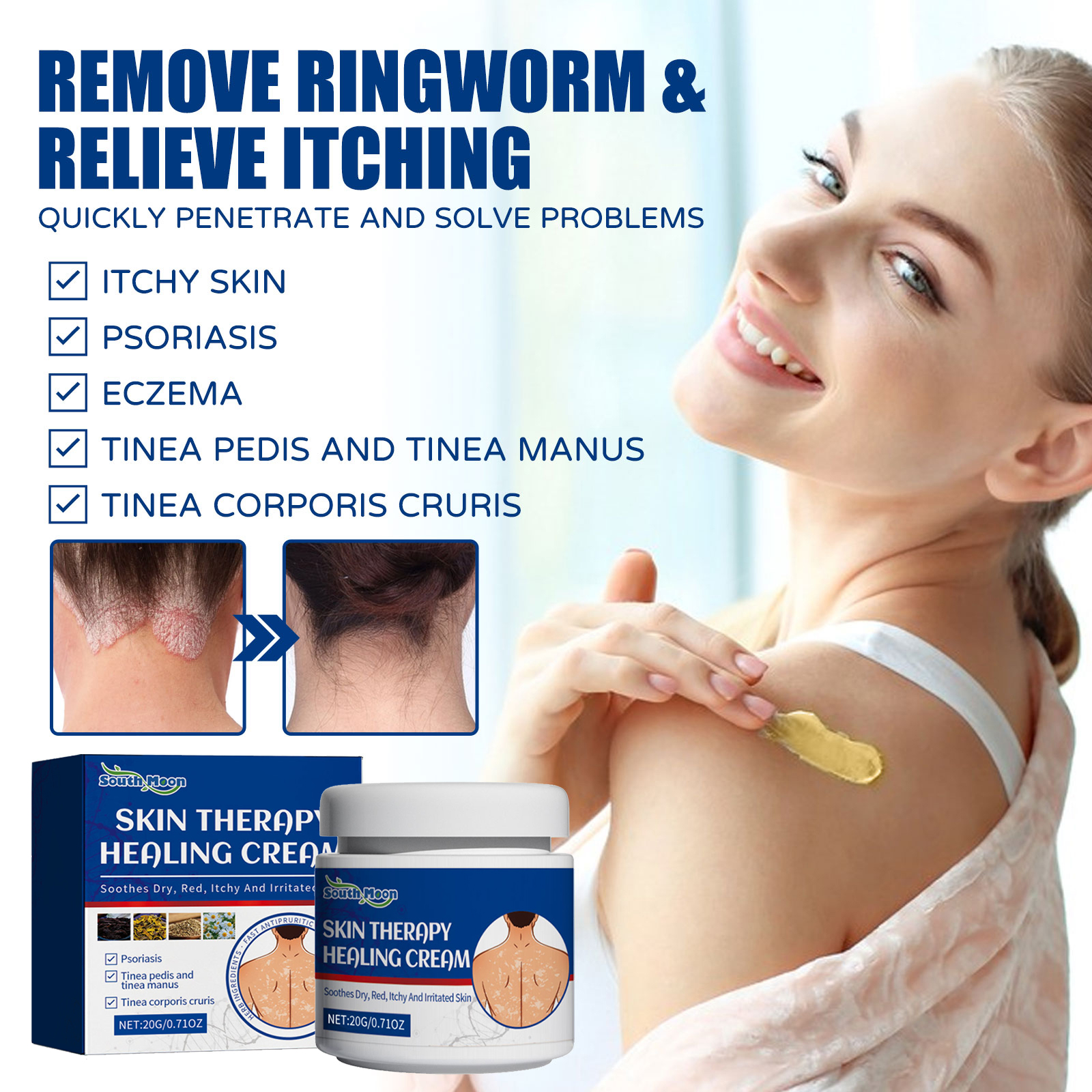 Our skin care cream contains snake bed, chrysanthemum, yellow cedar. It can reduce redness and inflammation, itching and peeling, effectively suppress fungi, and restore smooth skin. Its application method is very simple: first clean and dry the affected area, ensure that the ingredients of the product are not allergic to the premise, apply the appropriate amount of cream on the affected area, and finally gently massage until completely absorbed. After use, it can effectively repair itching caused by moss, protect damaged skin and maintain skin health.