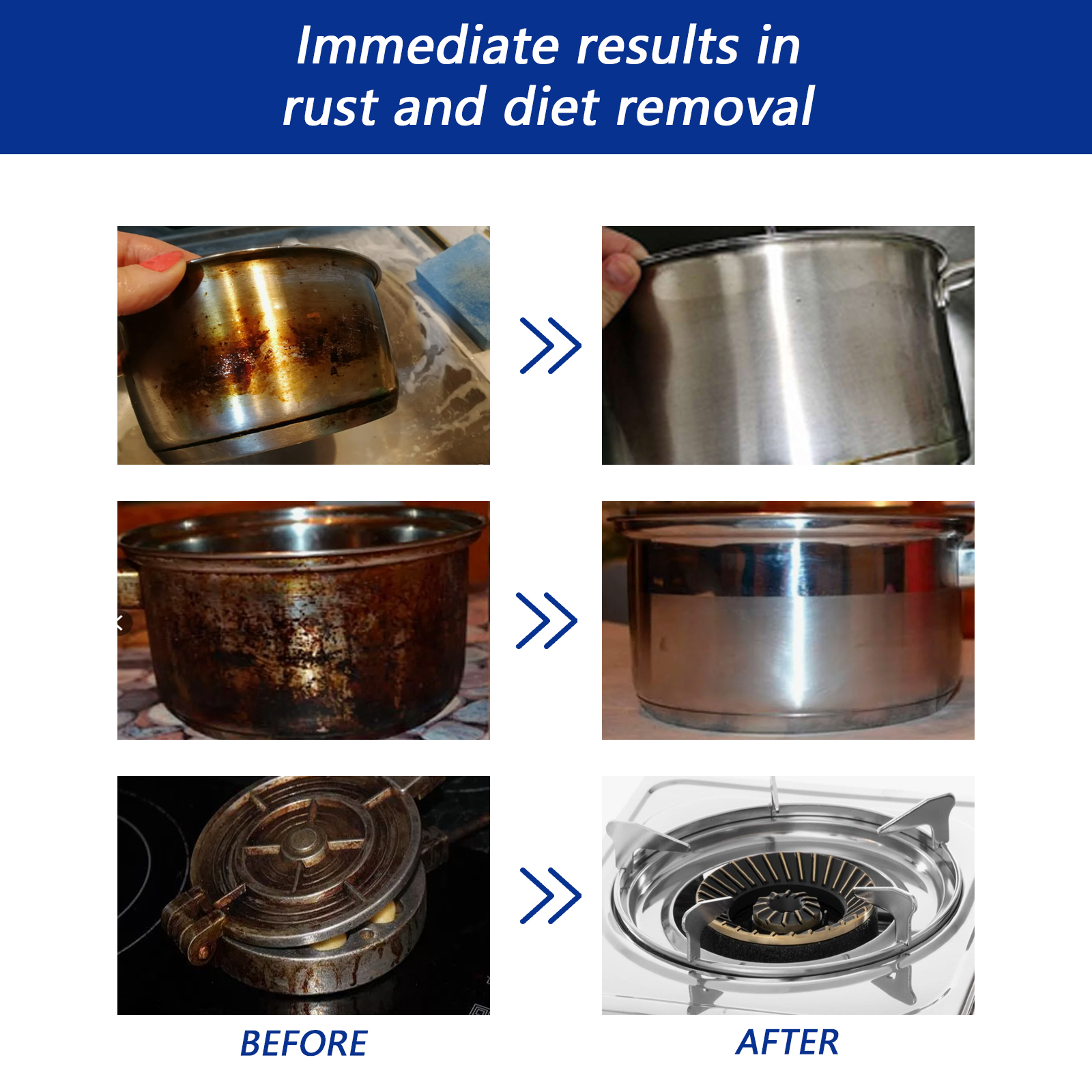 Our stainless steel cleaning creams contain surfactants, metal chelators, penetrants. It can effectively remove creases, purify and prevent rust, quickly remove stubborn stains, oxidation layers and rust spots on various types of stainless steel surfaces, and extend the service life of metal kitchenware; Quickly and effectively remove stubborn stains on various stainless steel surfaces with just the right strength and area, more uniform spraying and more convenient cleaning. Its use method is very simple: according to the required area, take the right amount of smear on the surface of the stain. Wipe with a sponge, such as serious stains, can be repeatedly wiped several times. After wiping, rinse off with water. Stainless steel cleaning paste has a strong purification, rapid decomposition of deep penetration, effective dissolution of the effect of diet, the use of strength and area can be just right, spray more uniform, more convenient cleaning.