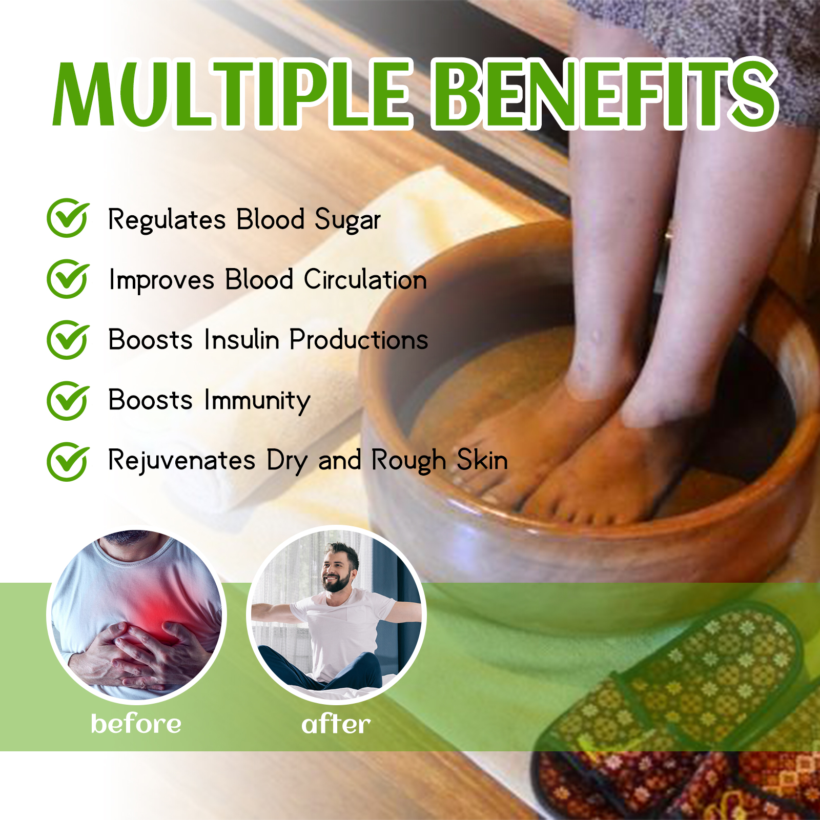 Our sugared foot bath contains ginger and ginseng. It can relieve diabetes. Long-term blood sugar can cause atherosclerosis. Its use method is very simple: 1. Take a foot bath bag, put it in warm water, 2. Wait about 10 minutes, it will dissolve, 3. Soak your feet for 15-30 minutes, then rinse your feet with water. And can regulate blood sugar, improve blood circulation.