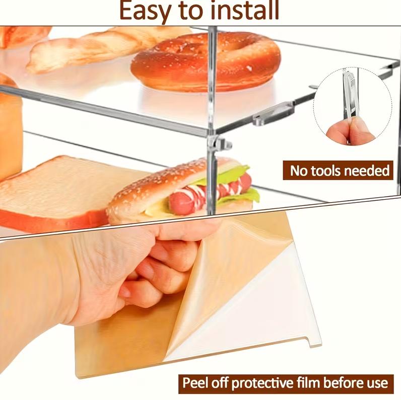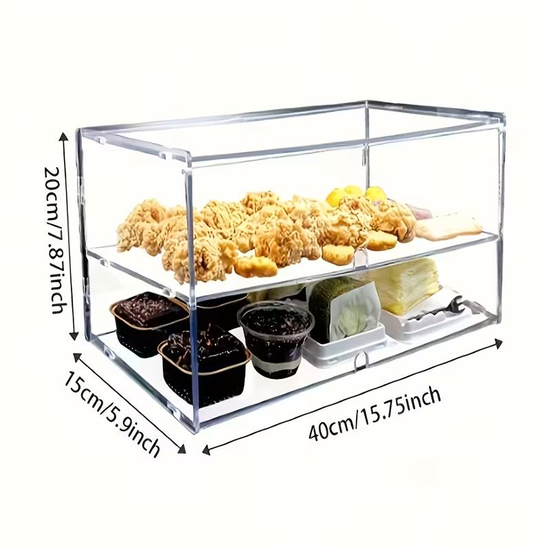 Introducing our latest TikTok product - the double-layer acrylic baking display case with a flip cover. This heavy-duty commercial and home kitchen essential is perfect for showcasing your delicious treats in style. With a lower shelf for added storage, this square pastry case is perfect for displaying donuts, cupcakes, bread, fruit, and more. Not only does this display case keep your goodies fresh and easily accessible, but it also protects them from dust and scratches. The durable acrylic material is easy to clean, ensuring that your treats always look their best. Whether you're a professional baker looking to showcase your creations or a home cook wanting to elevate your dessert presentation, this versatile display case is perfect for any setting. The sleek design and clear panels allow your treats to take center stage, making them irresistible to customers or guests. Add a touch of elegance and organization to your kitchen with this countertop storage shelf. Its practical design and durability make it a must-have for any baking enthusiast. Upgrade your kitchen today with this convenient and stylish baking display case.