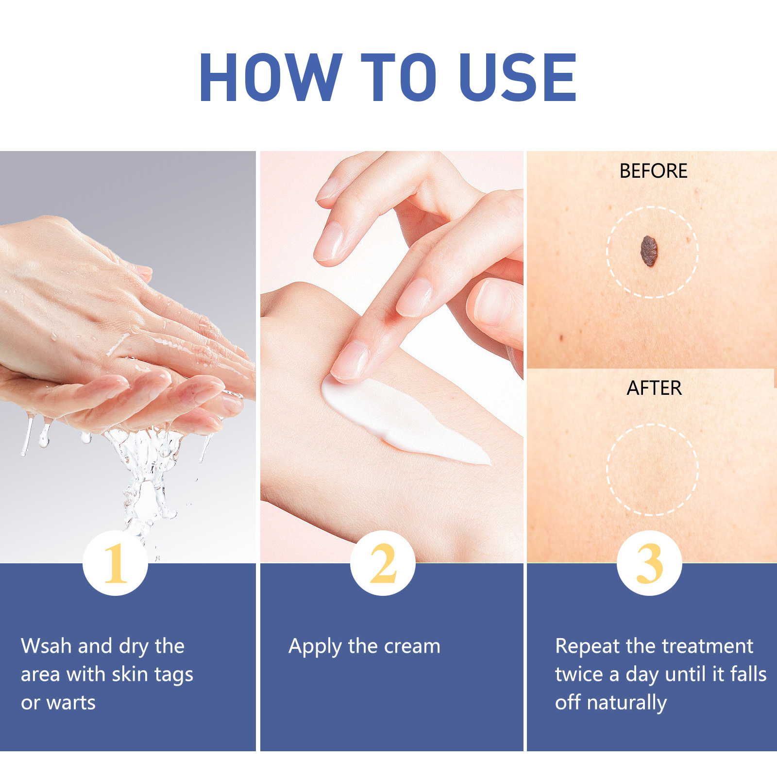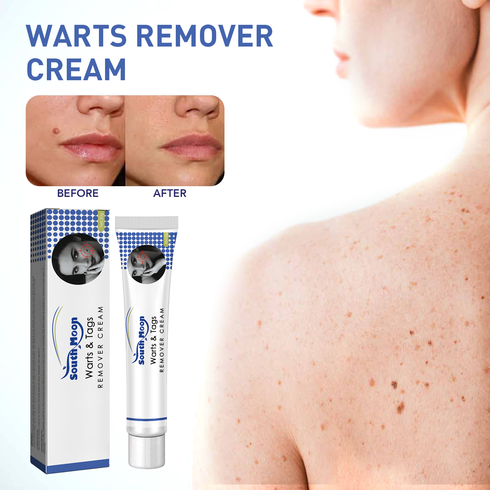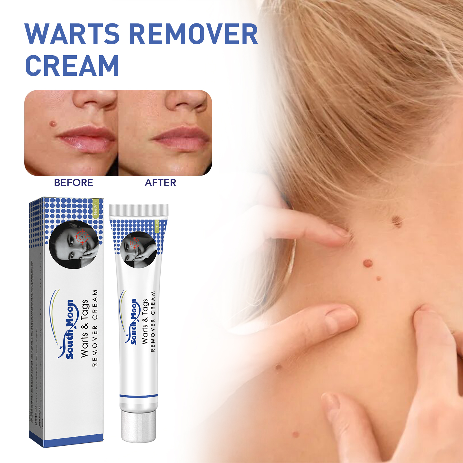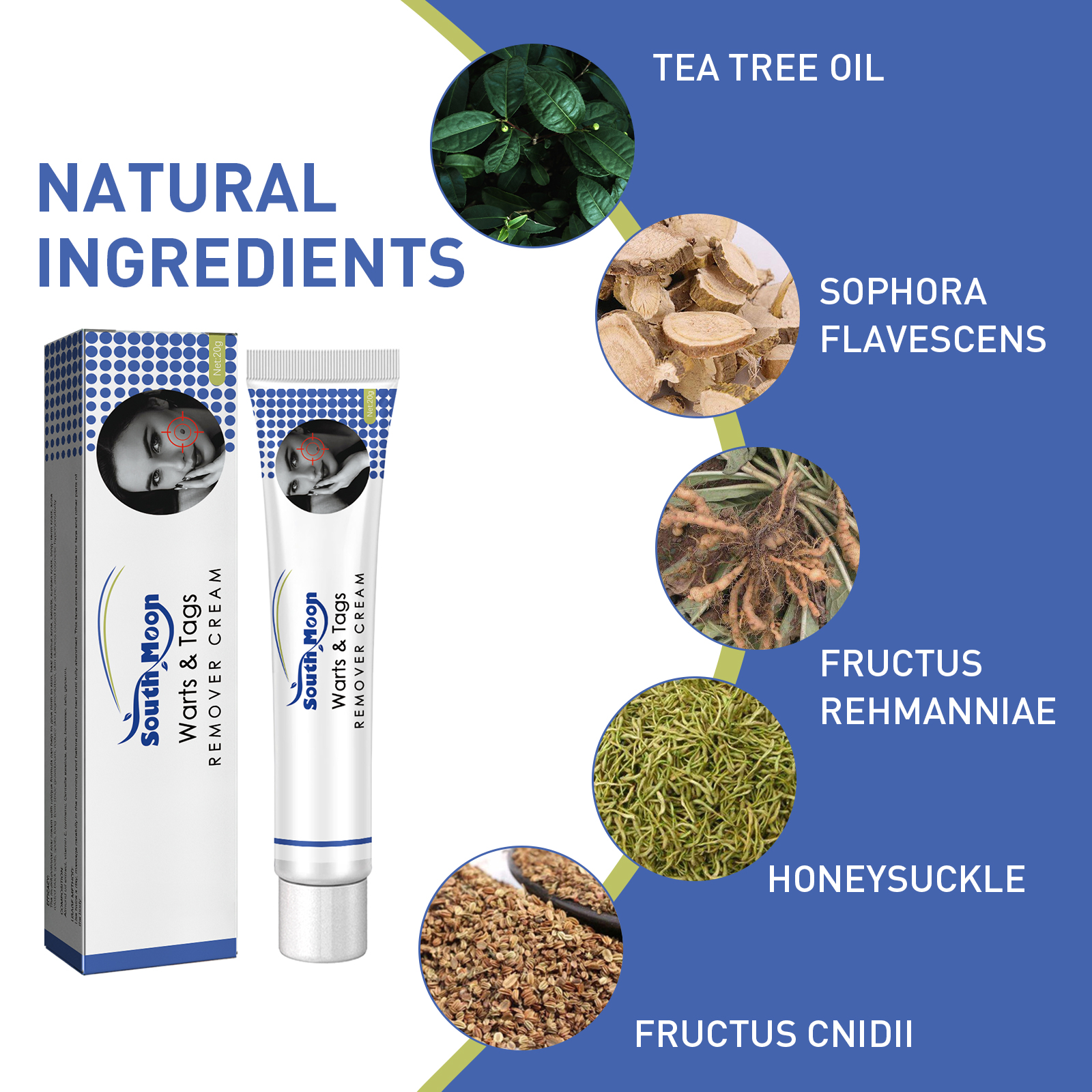 Our cream contains tea tree oil, matrine and Rehmannia. It can help gently remove warts from the skin, reducing the appearance of warts and making the skin smoother. Its use method is very simple: 1. Dry the skin or wart area; Step 2 Apply face cream; 3. Repeat twice a day until skin softens naturally. The cream penetrates into the skin and repairs scars.