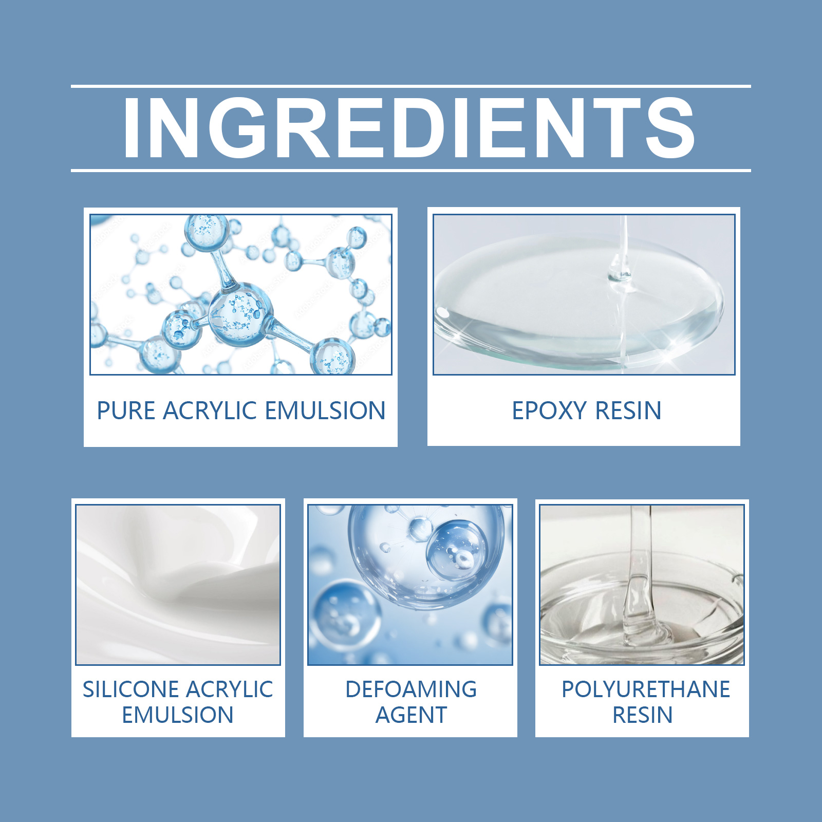 Our waterproof adhesives contain epoxy resin, pure acrylic emulsion. It can be applied to a variety of environments, providing lasting bonding effect Fast drying effect Fast drying after use, saving construction time, ensuring fast completion compatible with a variety of materials suitable for a variety of materials, such as metal, plastic, wood, etc. Adhesion firm, not easy to fall off activation. Its use is simple: use a brush to brush this product directly on the surface, fill the joint, repeat the brush 2-3 times, let the product penetrate into the base, wait for it to dry and clean the base surface, and then use to ensure that the surface is dry. And can be strong adhesion, stable and durable, fast drying, improve efficiency, strong applicability, suitable for a variety of materials, formula use safe and worry-free.