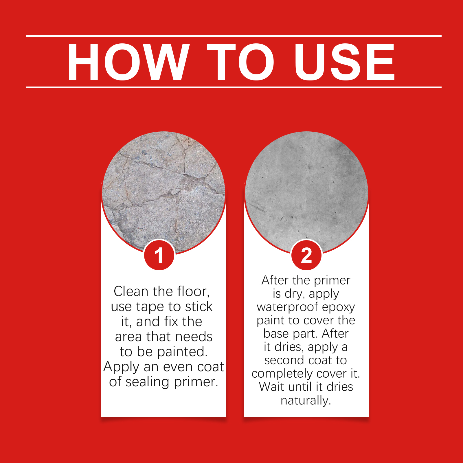 Our waterproof epoxy floor paint contains epoxy resin, polyurethane resin, pure acrylic emulsion. It can quickly penetrate joints, cracks, leakage, forming a waterproof protective layer, sealing effect is remarkable. The way to use it is simple: 1. Clean the floor, tape it down, and fix the area that needs painting. Apply an even coat of sealing primer. 2. After the primer dries, apply waterproof epoxy paint to the primer. When dry, apply a second coat to completely cover it. Let it dry naturally. The extremely high wear resistance ensures that the floor remains intact for a long time.