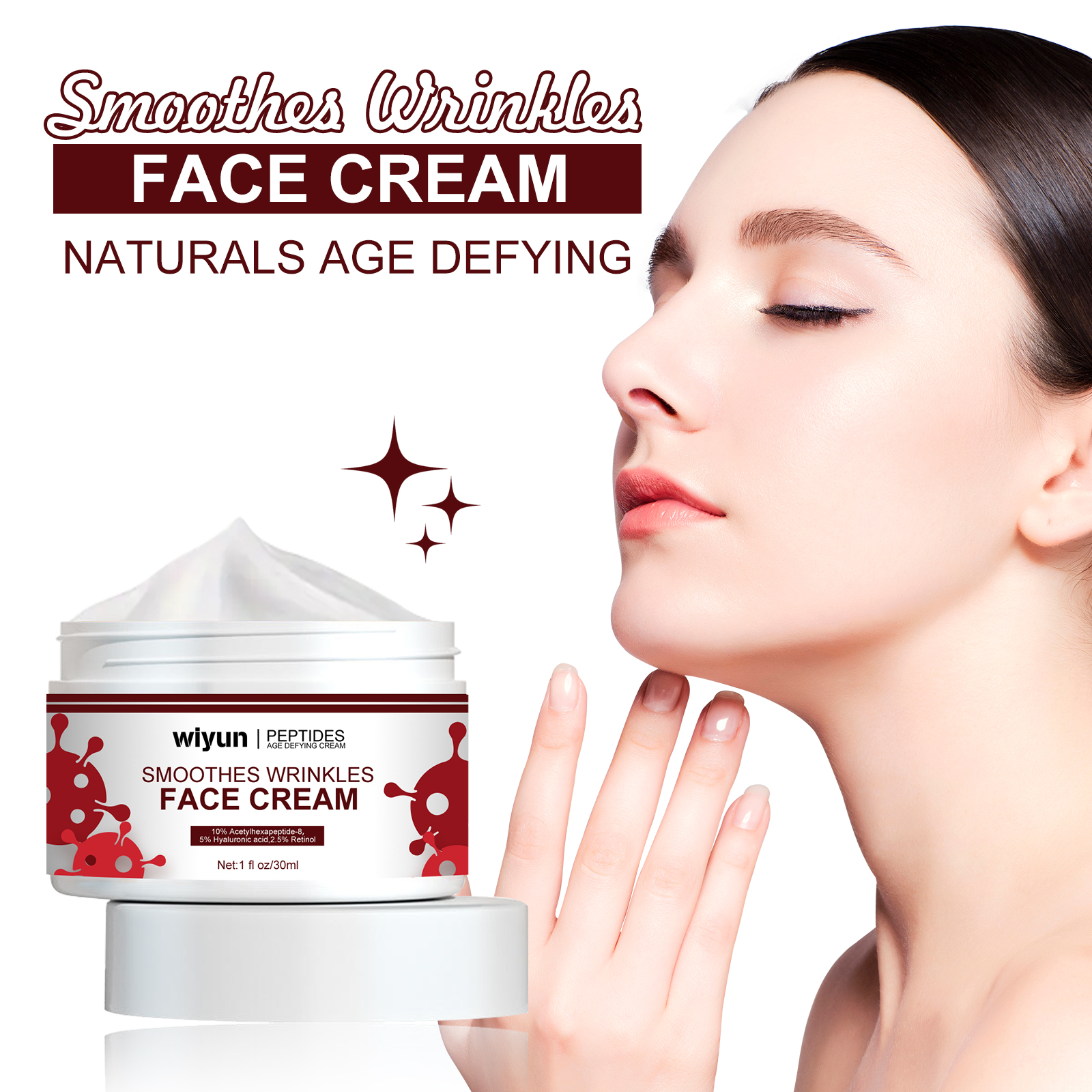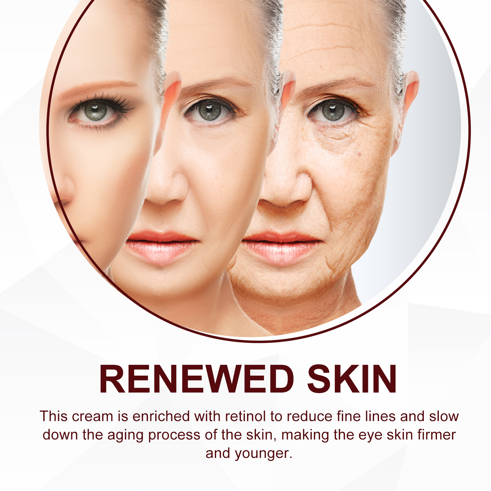 Our retinol firming cream contains retinol, acetyl hexapeptide-8, and hyaluronic acid. It can delay skin aging skin, become firm and youthful skin, provide a lasting moisturizing effect, improve dull skin, rejuvenate skin, make skin brighter and more radiant. The way to use it is simple: after cleansing, apply the cream evenly to the face and gently massage until it is completely absorbed. Rich in retinol, reduce fine lines, delay skin aging, make eye skin firmer and younger. Significantly improved skin condition, including wrinkles, dullness and dryness, the ingredients are natural and gentle, suitable for all skin types, including sensitive skin.