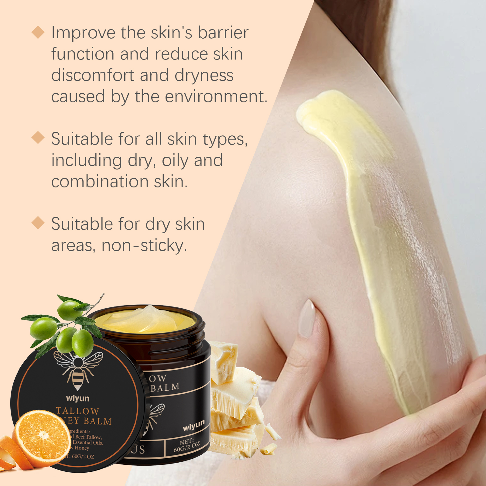 Our tallow honey Moisturizing cream contains honey and hydrogenated olive oil. It can deeply moisturize and make the skin soft and smooth like silk. Long-lasting moisturizing, protecting hydrated skin all day long. Its usage method is very simple: clean the skin and keep it dry. Take an appropriate amount of the face cream, apply it evenly to the face and body skin, and gently massage in circular motions to ensure it is fully absorbed. It is also light and non-sticky in texture, quickly penetrates the skin, keeps the skin hydrated and plump, and is comfortable to use. Gentle and does not clog pores, enhancing skin elasticity.