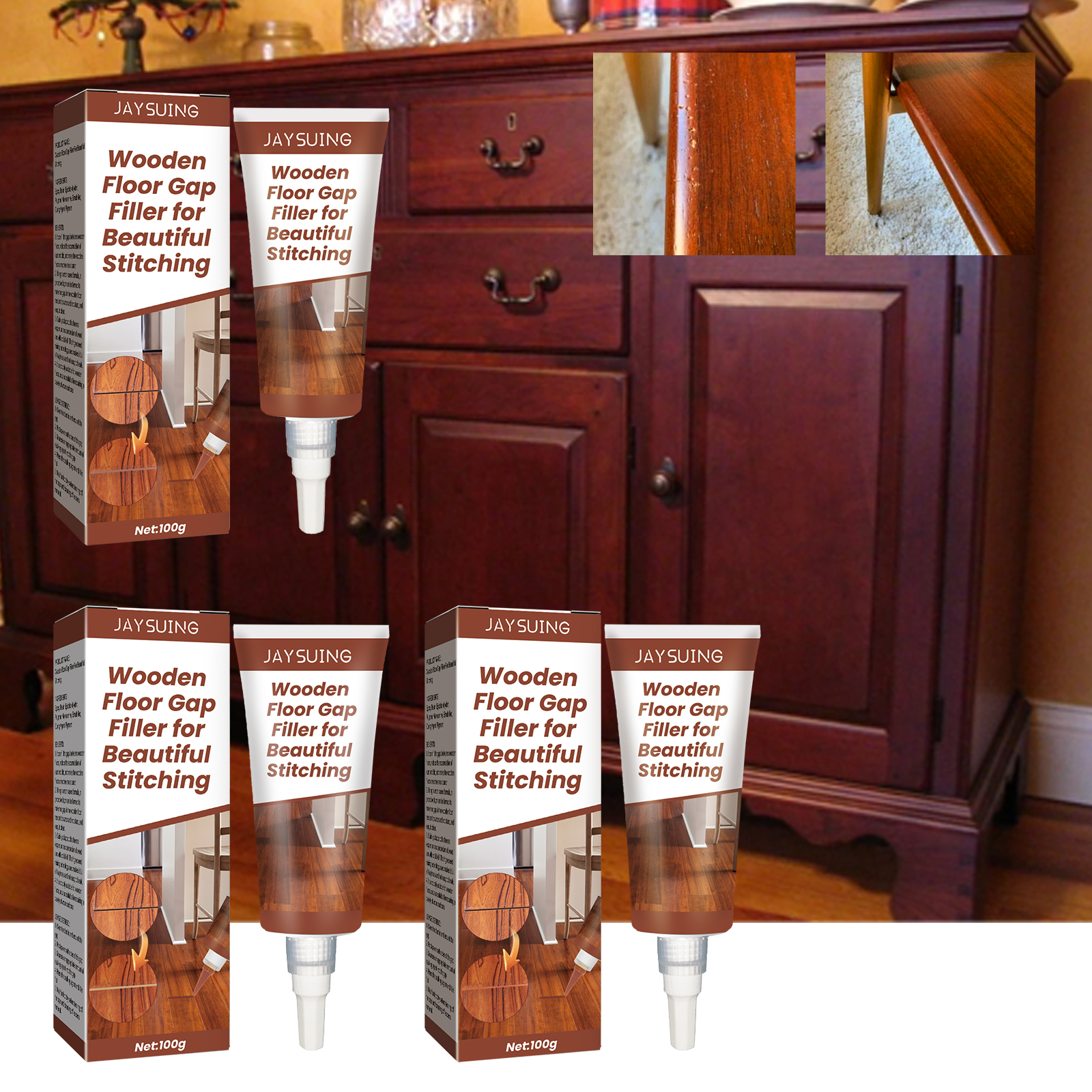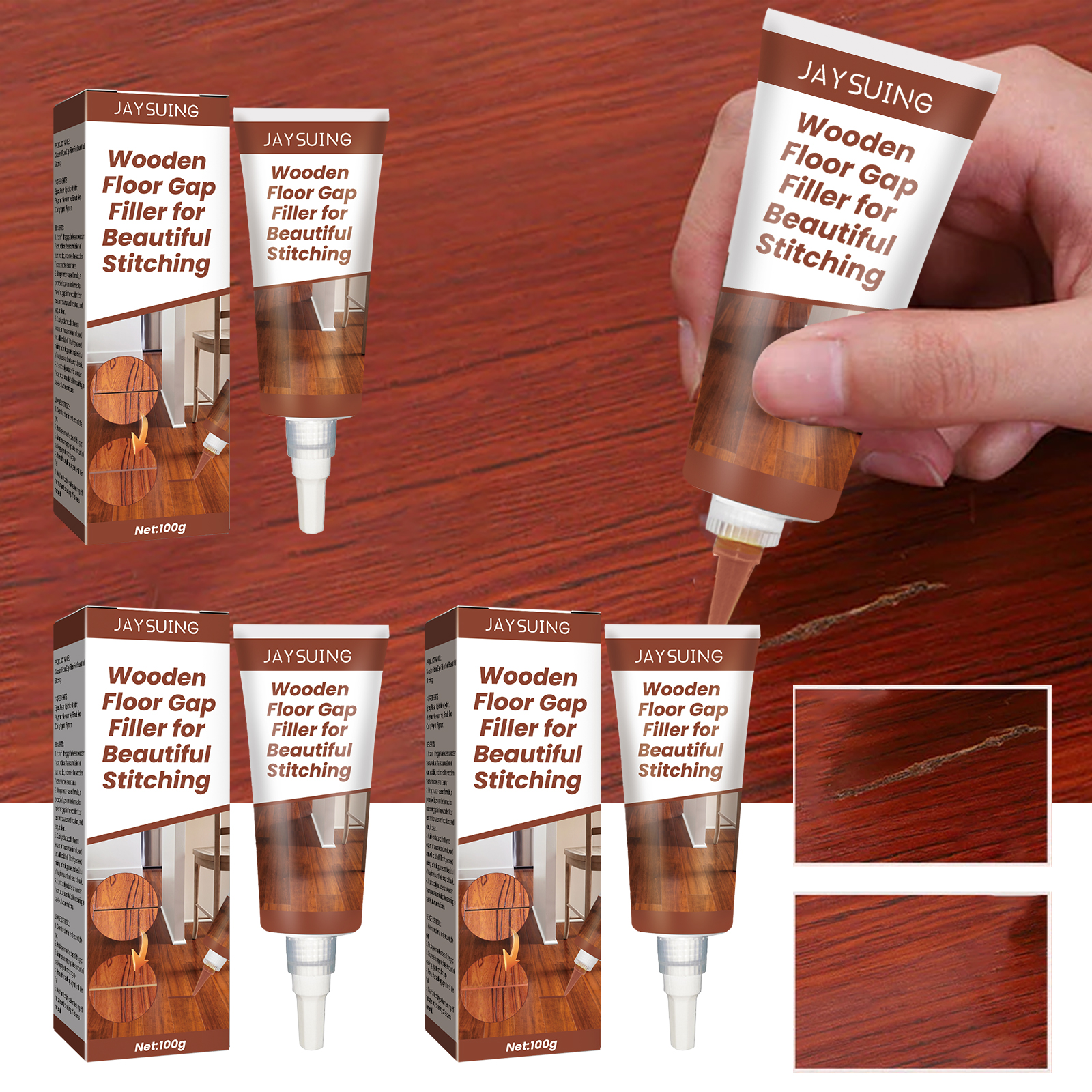 Our wood floor sealant contains epoxy resin, epichlorohydrin, polyether monoamine. It can be quickly repaired, waterproof and antifouling, does not collapse, does not crack, can fill the gap between the wood floor, reduce the accumulation of dust and dirt, and make the wood floor smoother and cleaner. Its use method is very simple: clean the dust in and around the gap; Put the tape on both sides of the notch; Squeeze an appropriate amount of caulk into the gap; Press the caulk until it flattens; Let it dry, then peel off the tape and wash off the excess material. Wood floor sealant using water-based formula, can form a protective layer, so that the gap of wood floor waterproof and moisture-proof, easy to clean. Quickly adapt to the thermal expansion and contraction of wood, will not fall off. High speed mixing technology is used to make it resilient and not easy to break.