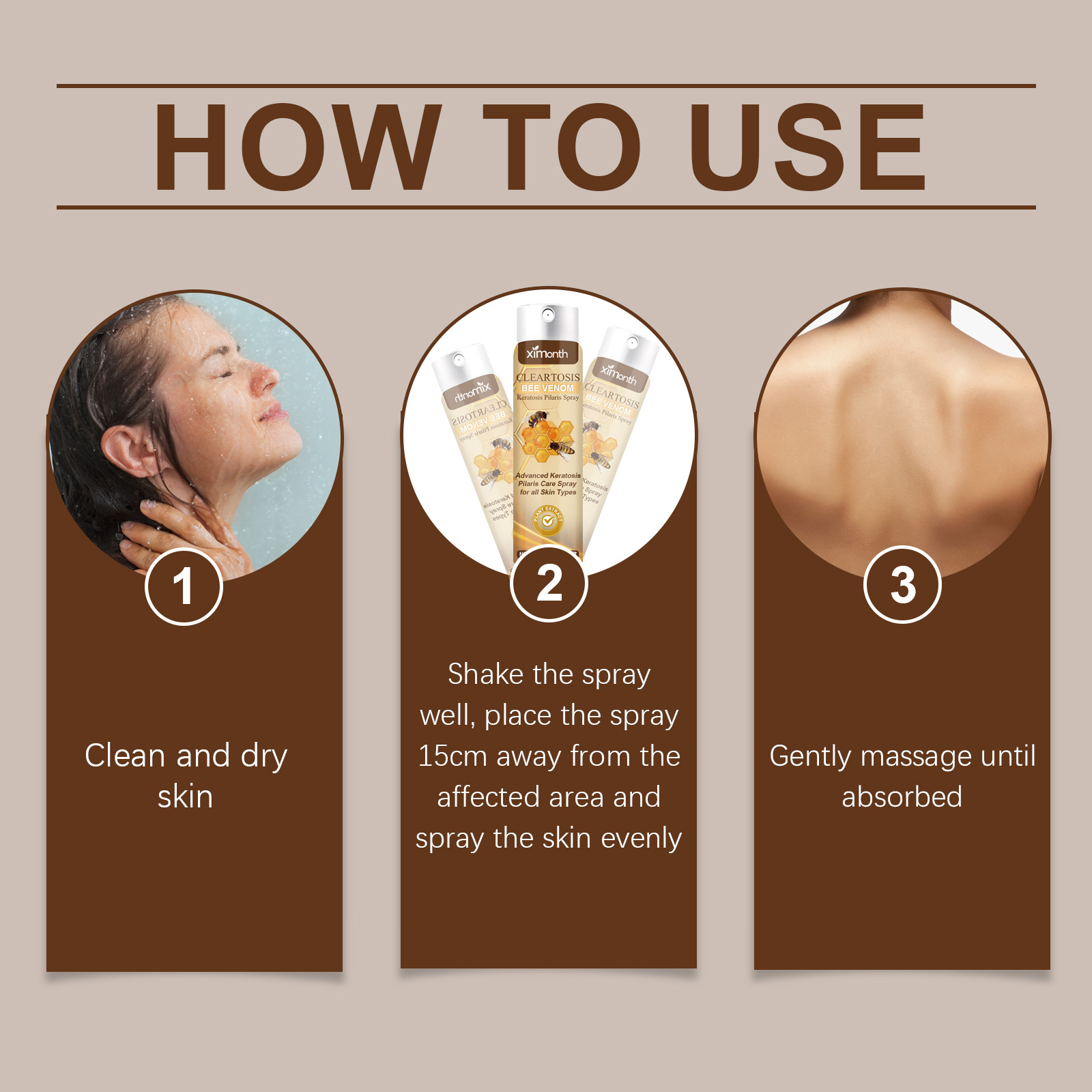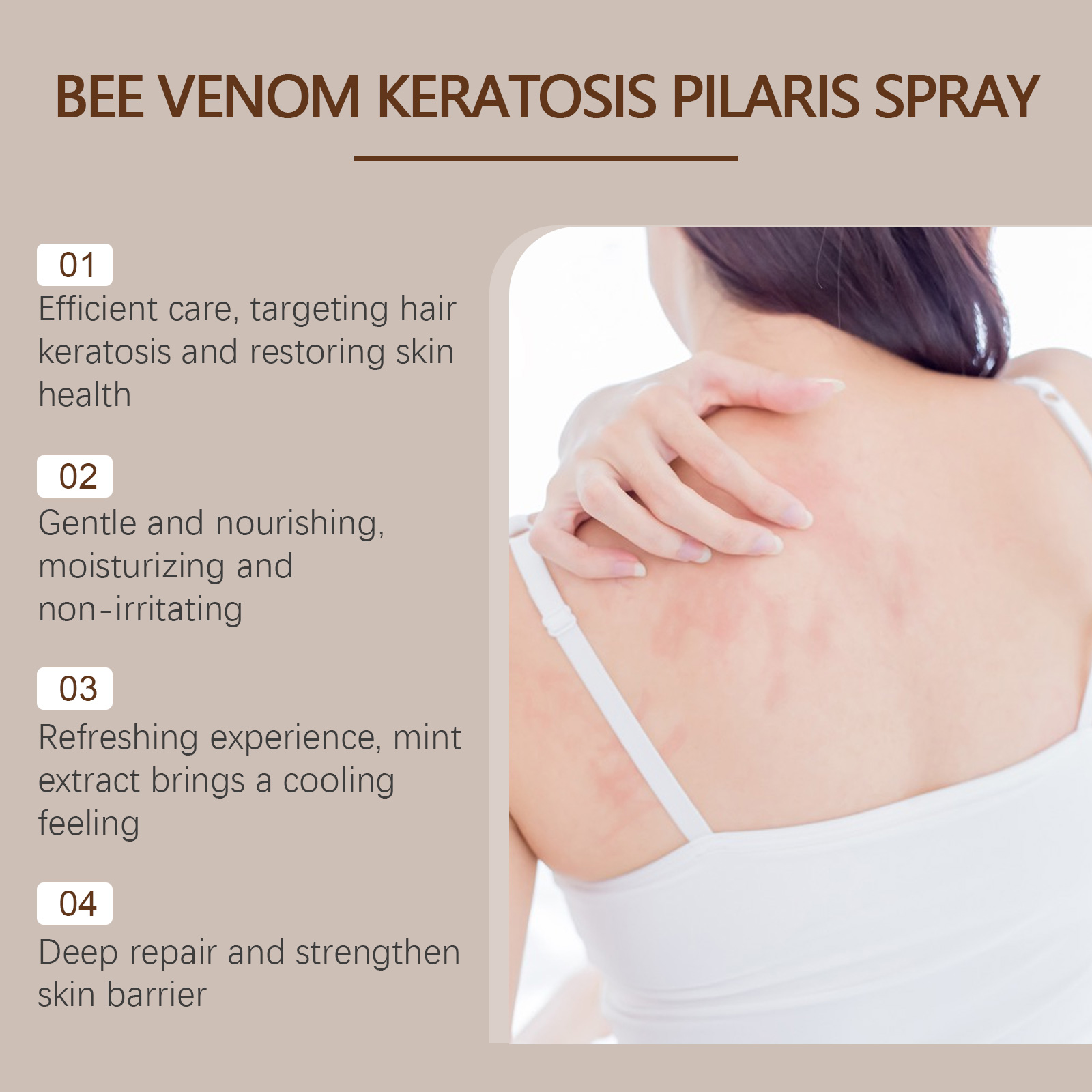 Our hair keratosis treatment spray contains glycerin, bee venom, mint extract. It can boost metabolism, plump skin and fade fine lines. Repair damaged skin, enhance skin resistance; Improves rough skin, makes skin smoother and more delicate. Unique formula for rapid penetration to the bottom of the skin. Its use is simple: 1. Clean and dry the skin; 2. Shake the spray, place the spray 15 cm away from the affected area, and spray evenly; 3. Gently massage until absorbed. Strong antioxidant ability, delay skin aging. The spray is fine, easy to penetrate, and absorbs quickly. Double moisture, lasting moisture, keep skin hydrated and shiny.