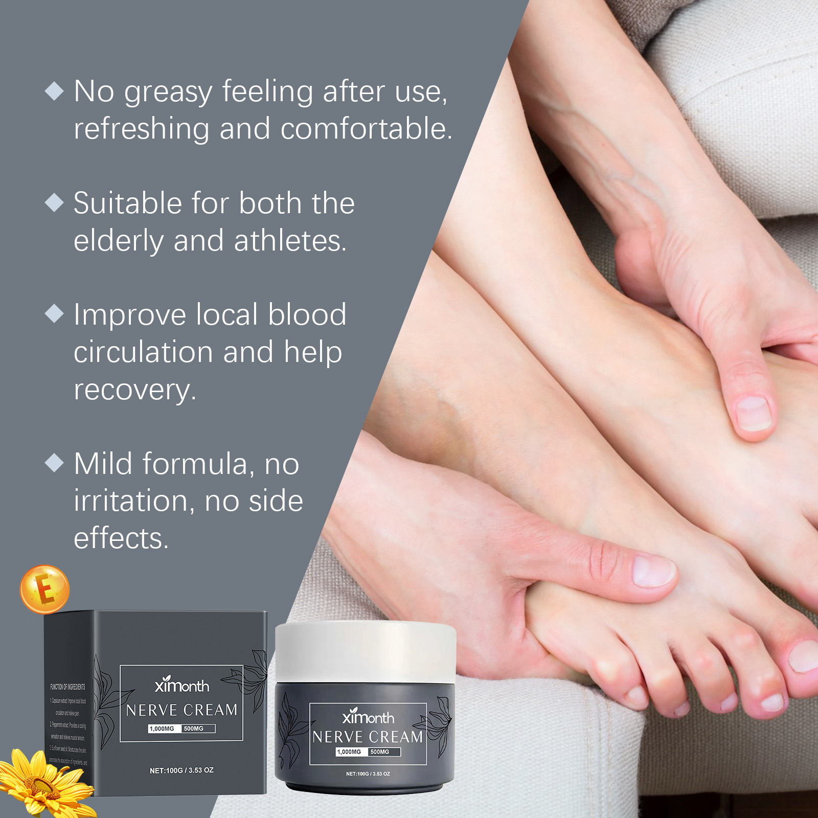 Our joint repair cream contains pepper extract, peppermint extract, sunflower seed oil. It can joint and back pain quickly and has a long-lasting effect. Effectively reduce nerve pain response and discomfort. Its application method is simple: 1. Thoroughly clean and dry the skin; 2. Apply appropriate amount of the product evenly on the skin of feet, toes, legs, joints and hands; 3. Gently massage to promote better absorption. Penetrate deep into the skin and reach the pain point, providing lasting relief.