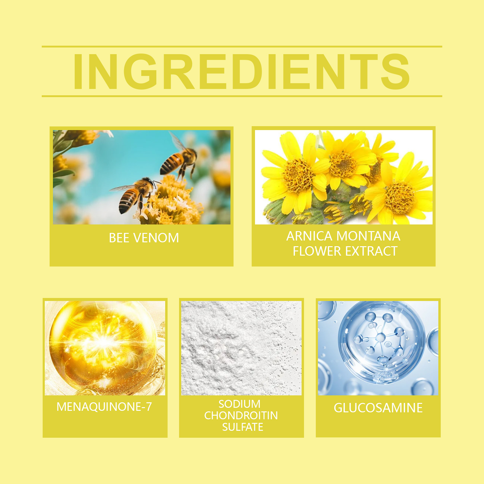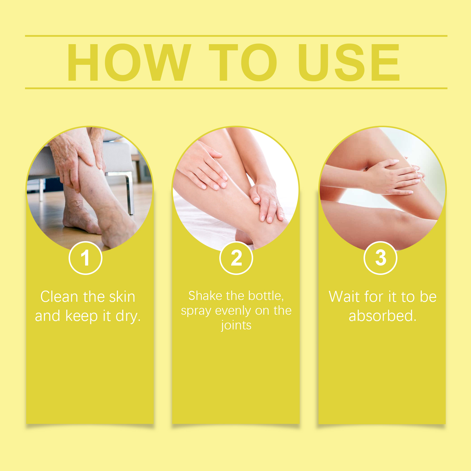 Our joint repair spray contains bee venom, arnica flower extract and vitamin K2. It provides immediate relief from arthritis, reduces discomfort, and restores activity. Effectively eliminate the edema of joint cyst and restore the normal joint shape. The way to use it is simple: 1. Clean your skin and keep it dry. 2. Shake the bottle and spray evenly on the joint; 3. Wait for it to be absorbed. Accelerate joint tissue repair and enhance cell regeneration.