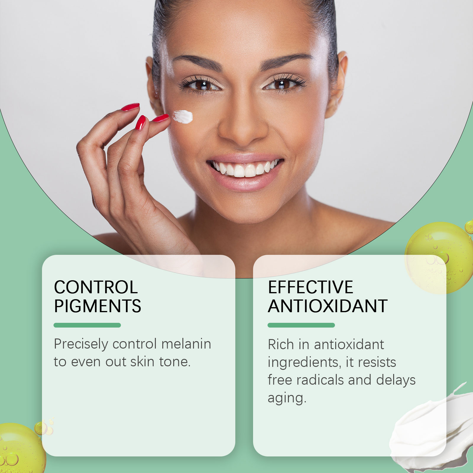 Our skin repair cream contains glycerin, psoralea fruit extract, safflower extract. It deeply hydrates and keeps skin supple. Strong moisturizing, improve dry skin, restore skin moisture. Soothe skin, discomfort and boost metabolism. Its application method is simple: 1. Clean and dry the neck skin; 2. Apply appropriate amount of the product evenly to the affected area; 3. Gently massage until absorbed. Precise control of melanin, even skin tone. Rich in antioxidants, anti-free radicals, anti-aging.