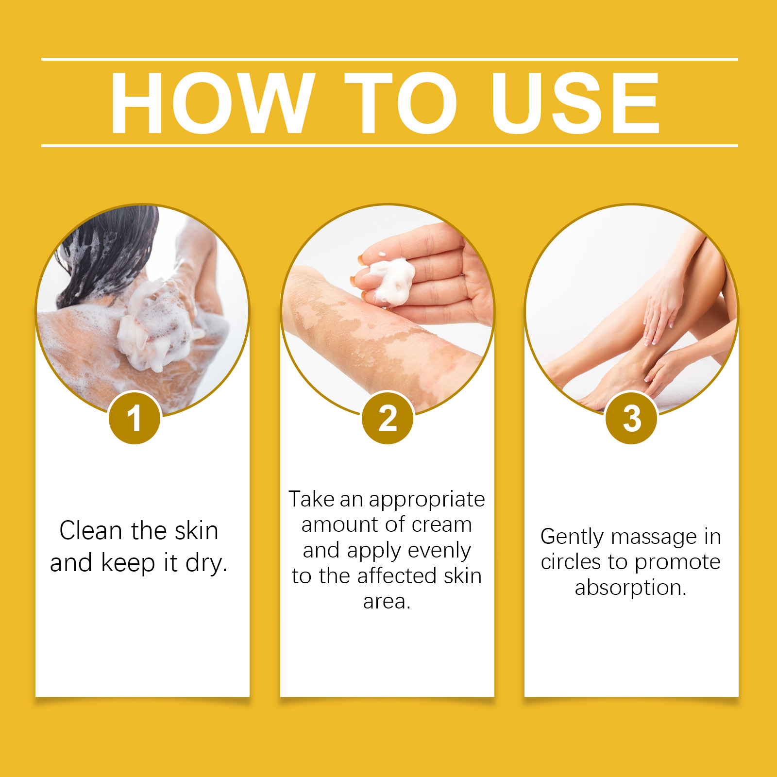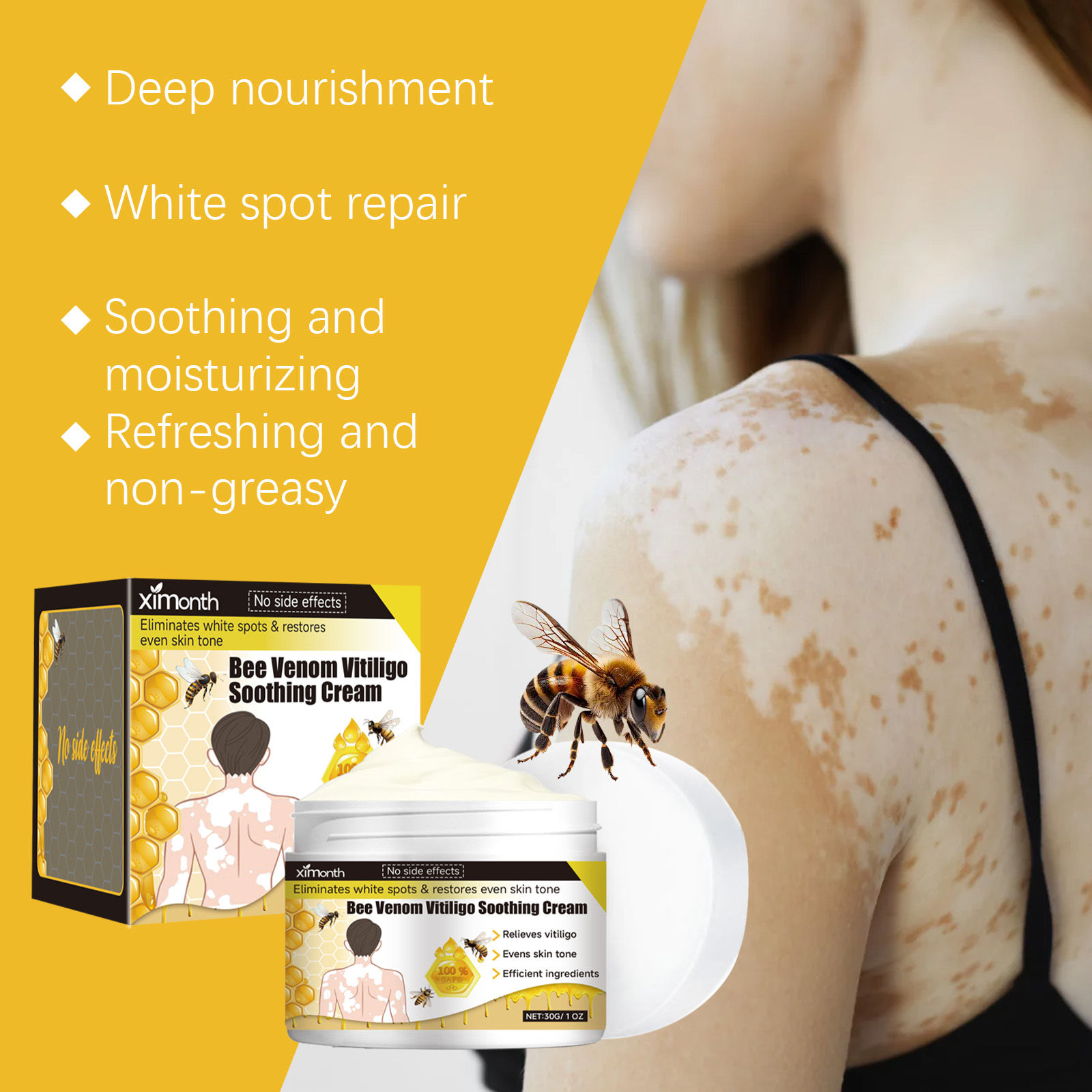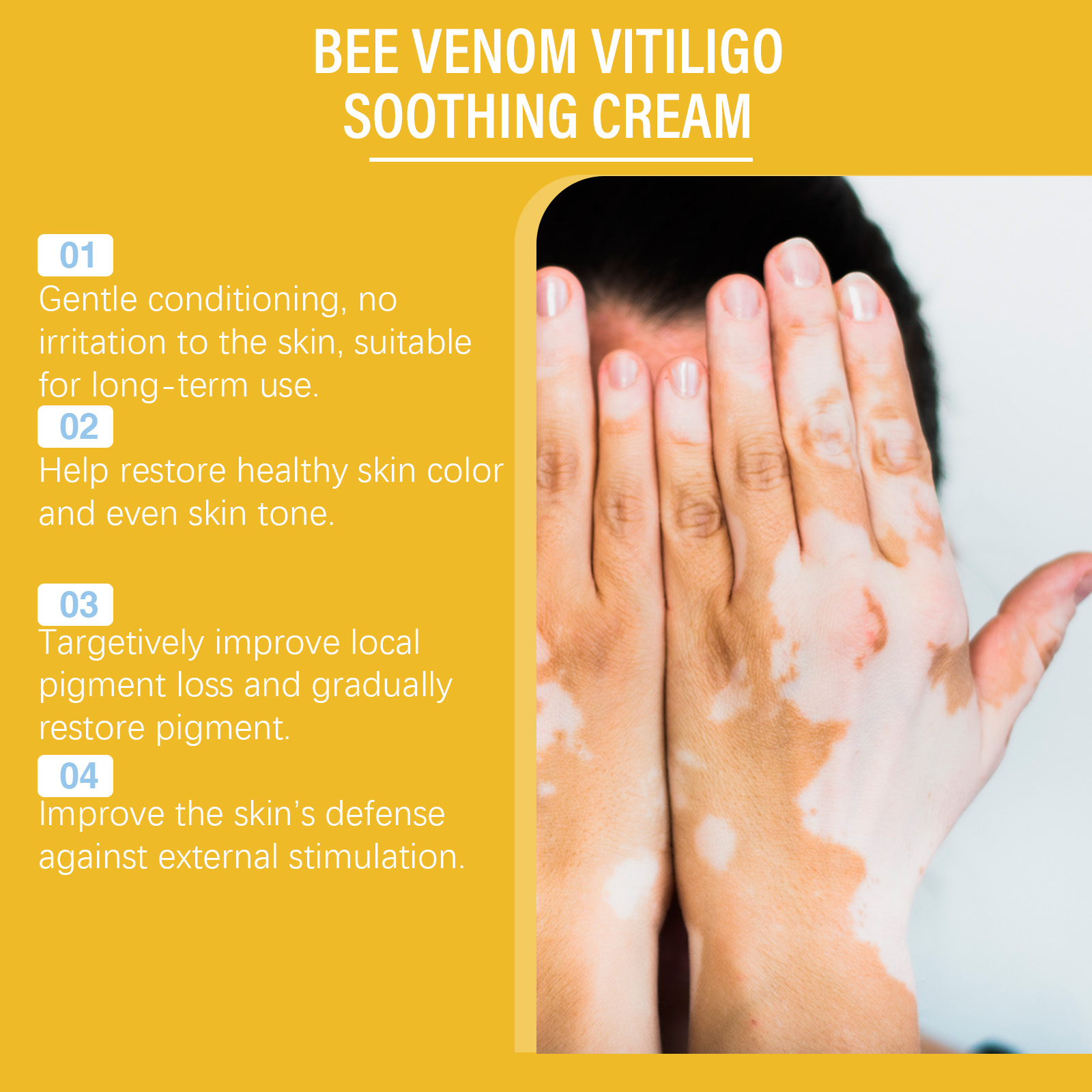 Our skin repair cream contains triethanolamine, bee venom and ginger root oil. It can promote the regeneration of skin cells and enhance the skin's self-repairing ability. Through deep nourishment and conditioning, gradually fade the edges of the white patches and restore the harmonious beauty of the skin. Its usage method is very simple: 1. Clean the skin and keep it dry; 2. Apply an appropriate amount of face cream evenly to the affected area. 3. Gently massage the eye sockets to promote absorption. Gradually blur the edges of the white patches and restore the harmonious beauty of the skin.