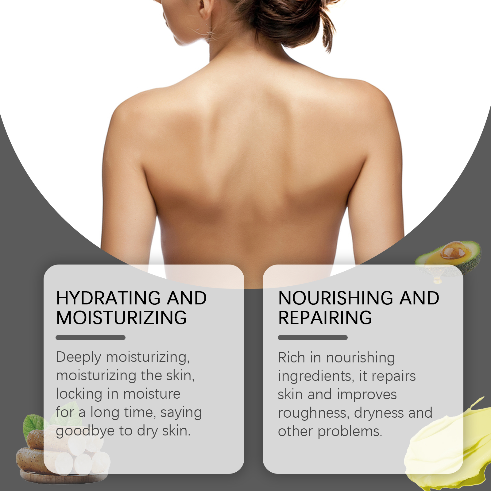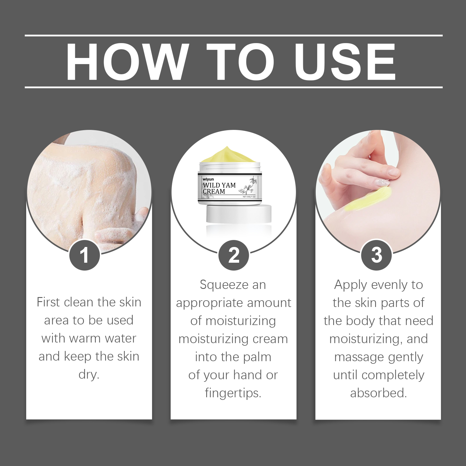 Our yam moisturizer contains wild yam root extract, avocado oil, beeswax. It can penetrate deep into the skin, quickly replenish water, and retain water for a long time. Rich in a variety of nutrients, can effectively repair damaged skin. Mild and non-irritating, gentle on sensitive skin and safe to use. The texture is fresh and easy to absorb, and will not leave a greasy feeling on the skin. Its application method is very simple: 1. First clean the skin area to be used with warm water and keep the skin dry. 2. Apply the right amount of moisturizer to your palms or fingertips. 3. Evenly apply the product to the parts of the body that need to be moisturized, and gently massage until completely absorbed. Yam Moisturizer moisturizes skin deeply, locks in moisture for a long time, and bids farewell to dry skin. Rich in nutrients, repair skin, improve rough, dry and other problems. Extracted from yam extract, free of additives, safe and reliable, your high-quality choice. The unique formula technology makes the skin moist and smooth, as soft as a baby.